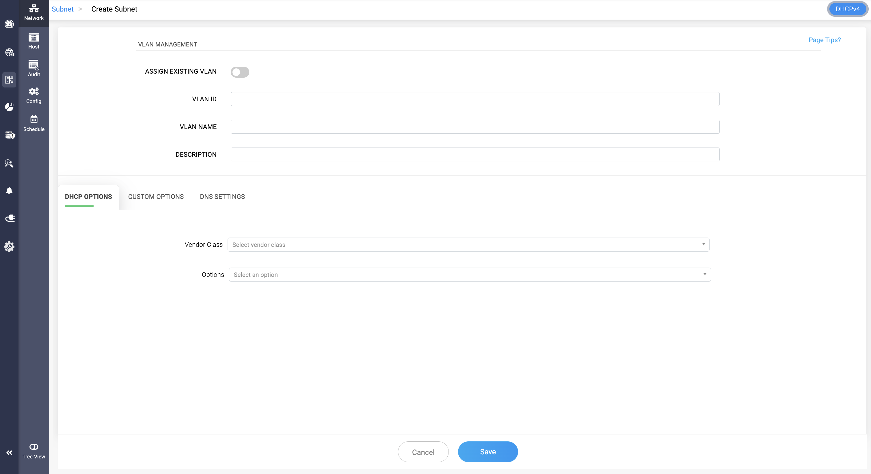 If you require a new VLAN to be configured atop this particular subnet, provide additional details like VLAN ID, VLAN Description and Name to create a new VLAN while creating the subnet. Or you can enable the option Assign Existing VLAN to map an existing VLAN to the subnet you are about to create.