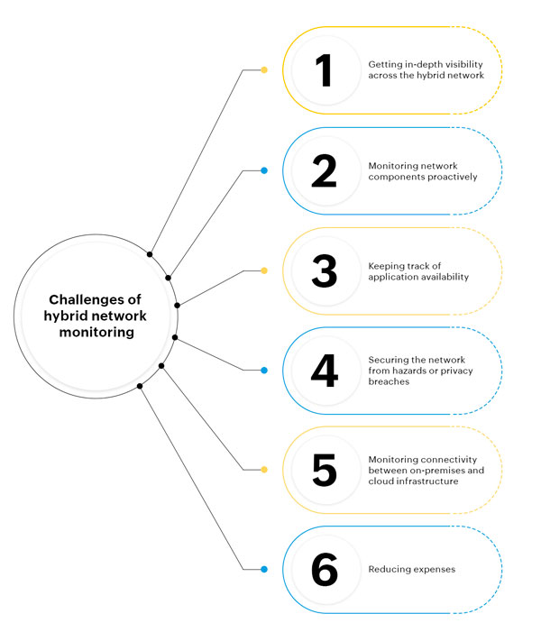 Modern IT teams are grappling with the many challenges that arise while monitoring and managing a hybrid network. Some of the commonly faced challenges include:
