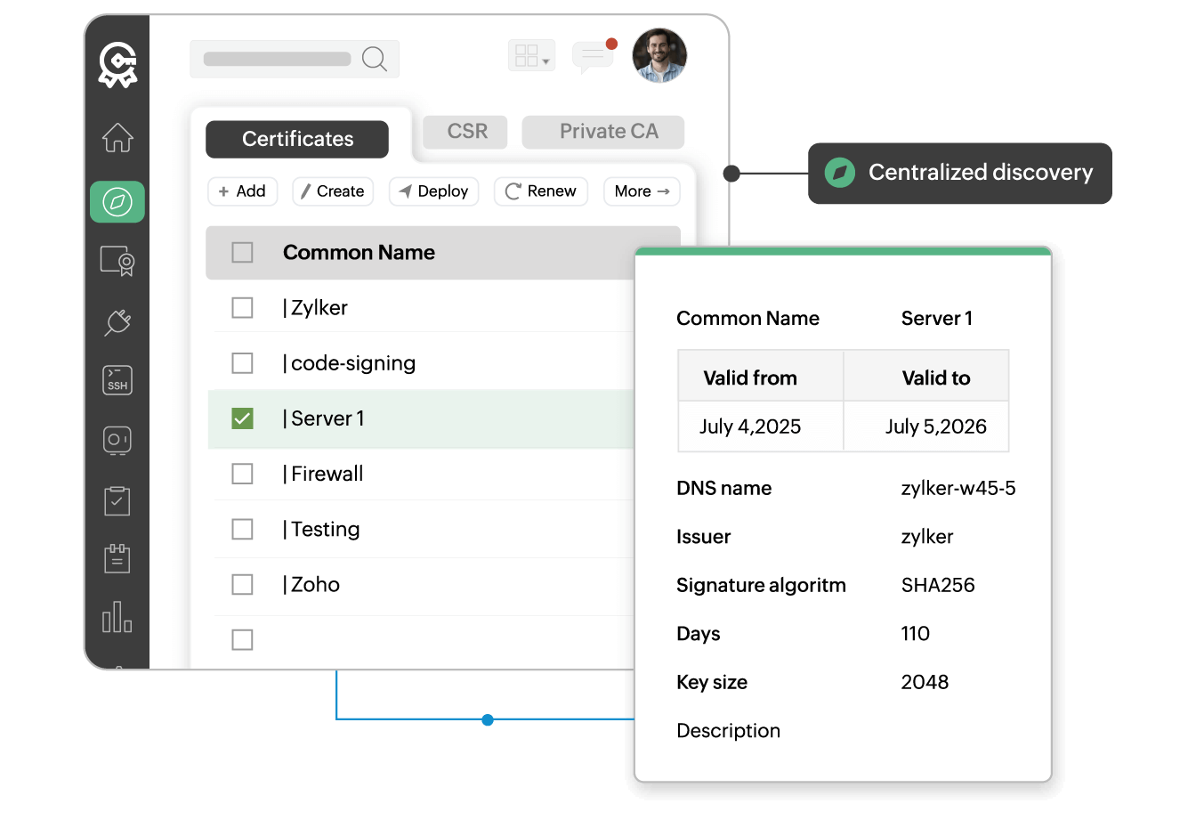 Automated discovery to scan and fetch certificates across servers, certificate stores, and cloud platforms.