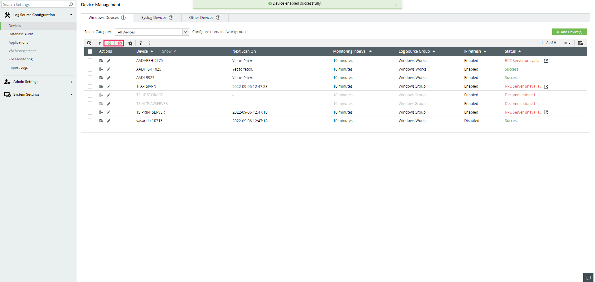 - Select the appropriate tab from Windows Devices, Syslog Devices, Other Devices.