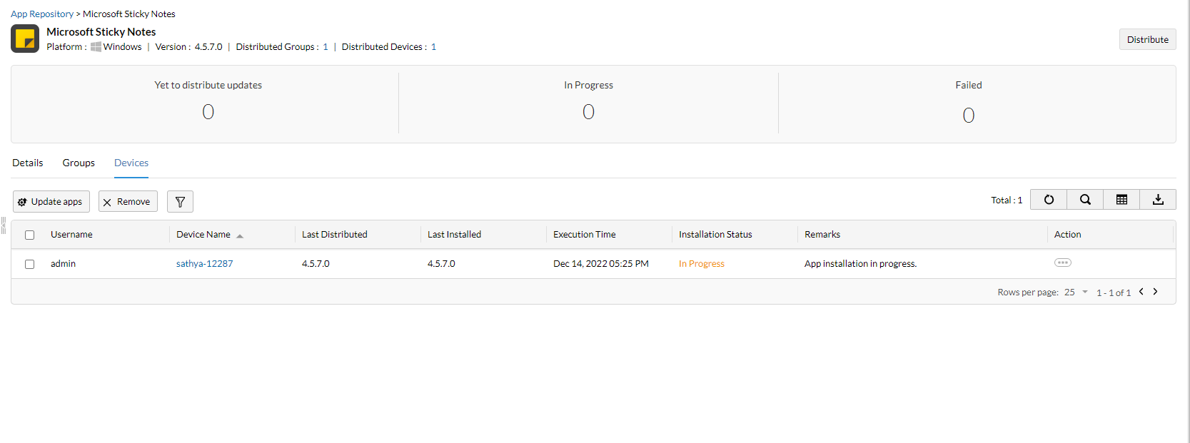 Installed Successfully installed the app update on the device You're all set, the update is available on devices.