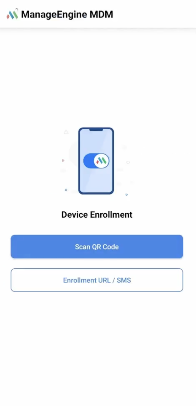 - Open the ME MDM app and scan the QR code or access the Enrollment URL to initiate the enrollment.