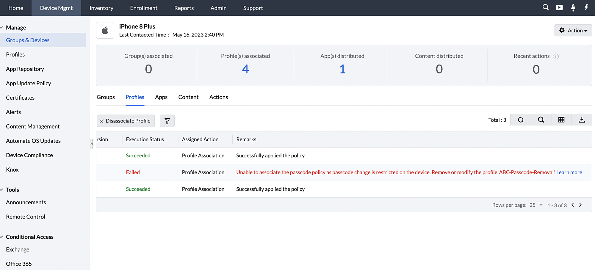 - At last, reset the Passcode policy within the failed profile and then try associating it to the device.
