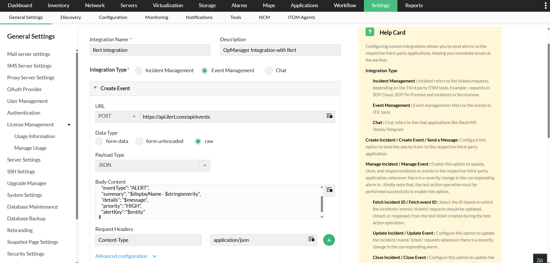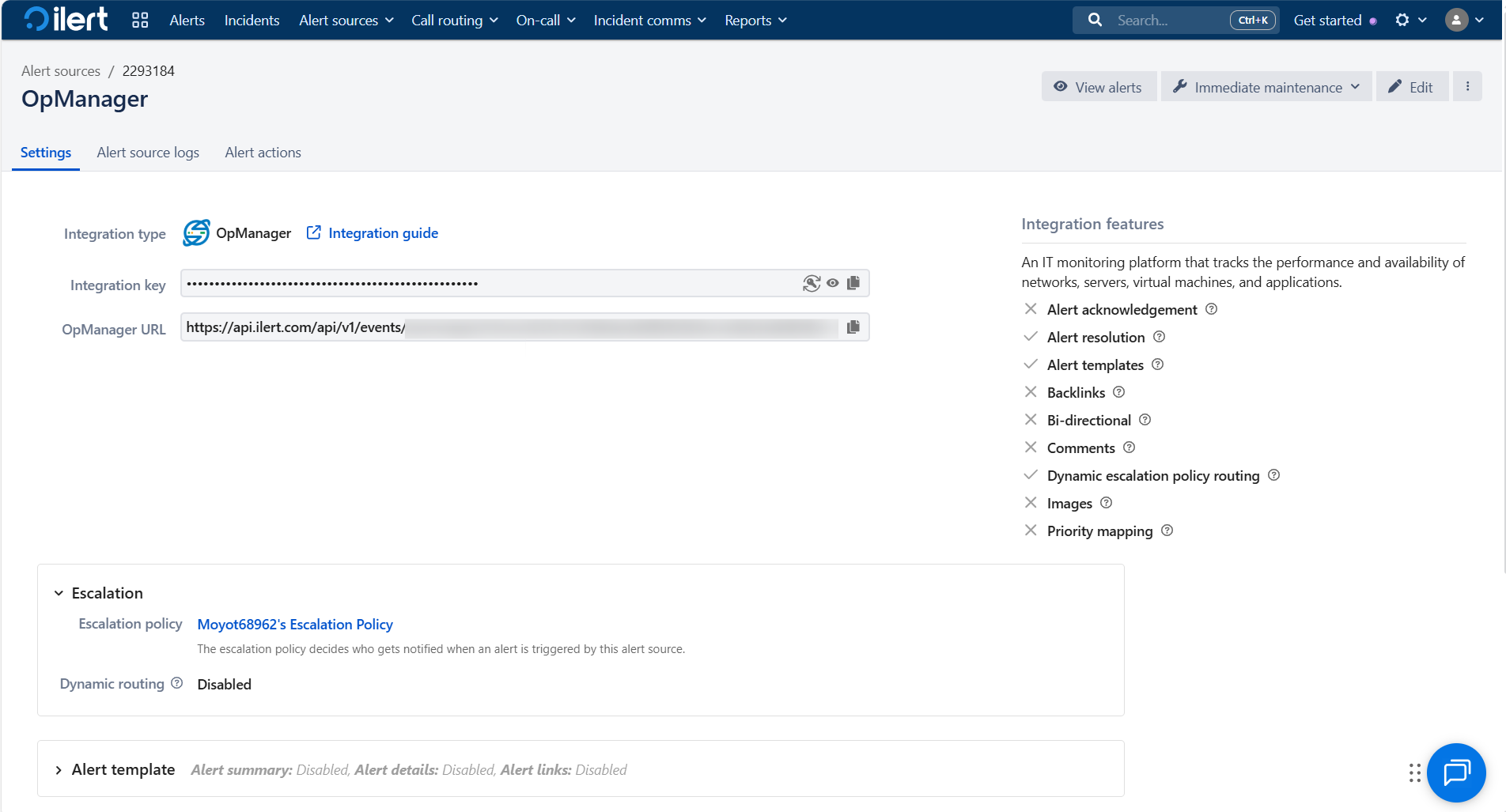 OpManager alerts can now be converted into ilert Events, enabling customers to monitor, acknowledge, and resolve alarms before escalation. This integration supports event deduplication and suppression, helping reduce alert noise. Thereby, it streamlines response to critical issues, minimizes downtime, and improves overall system reliability.