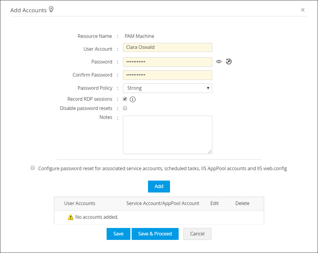 4. Click Save. PAM360 will immediately reset the password in the domain first and then, automatically update the new password across all servers where John Newton is used to run IIS websites.