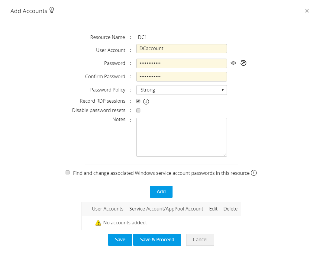 - Click Add Resources button and add the member servers along with their respective local accounts.