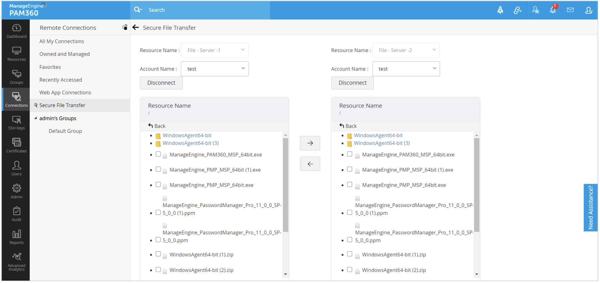 IT administrators can securely transfer files during Windows RDP sessions tunnelled via PAM360. All you need to do is drag and drop the files you want to share, making it easy to move information to and from remote systems while keeping security intact.