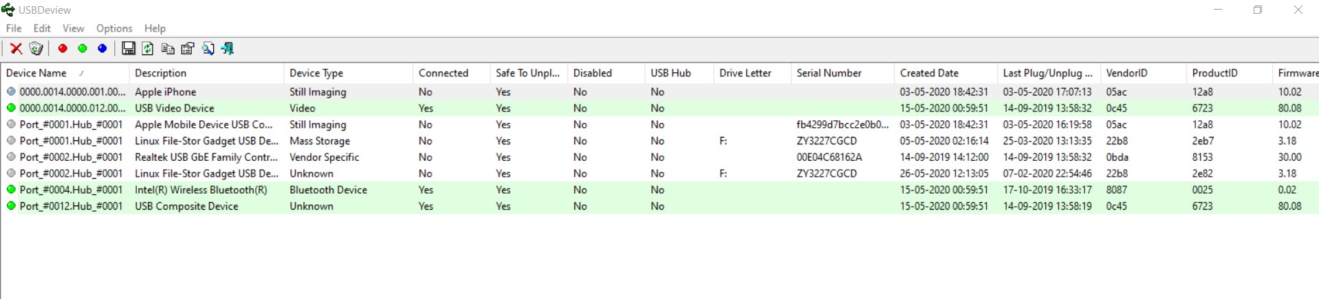 When you open USBDeview, this is what you'll see: