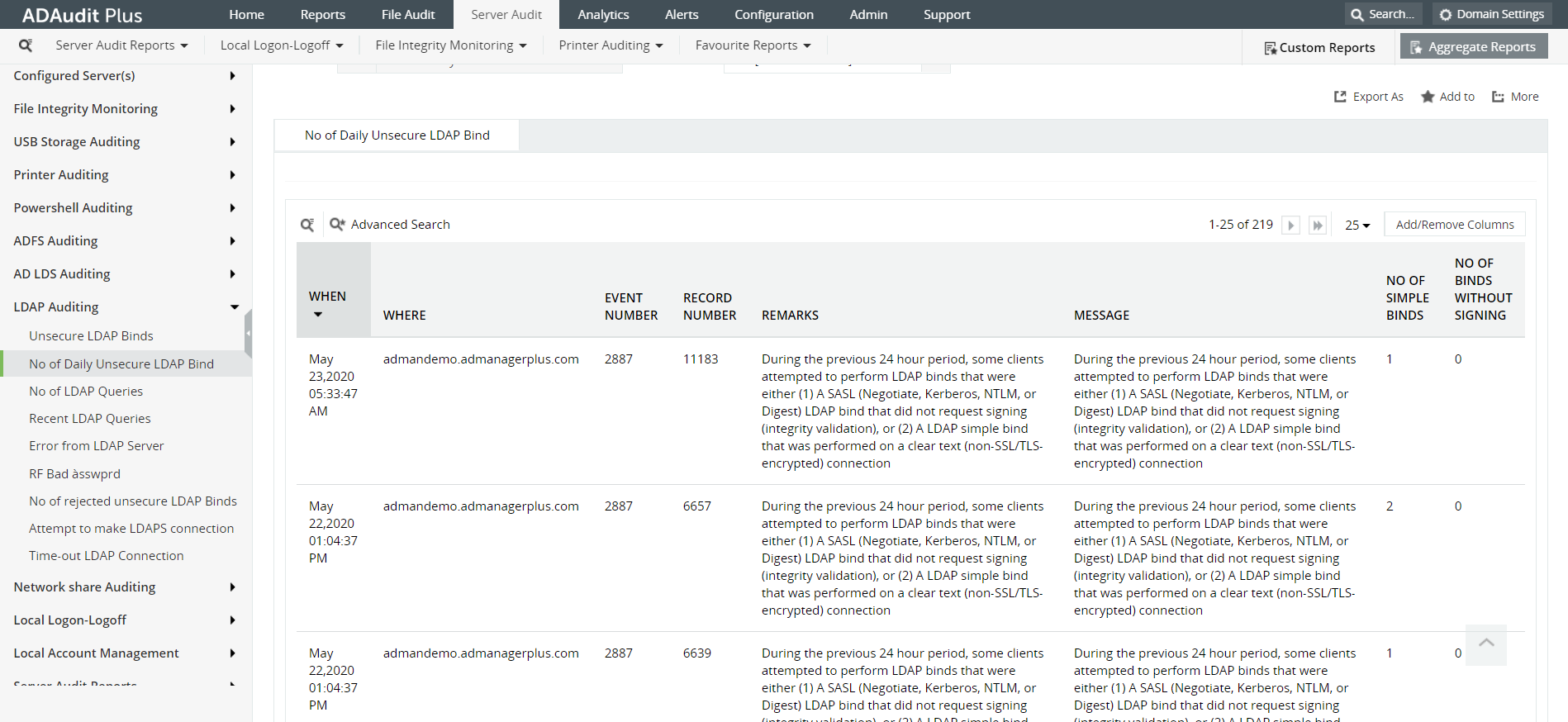 As a follow up to what you've learned above about LDAP Authentication, here's a sneak peek at our ADAudit Plus dashboard, that provides you with detailed LDAP auditing reports.