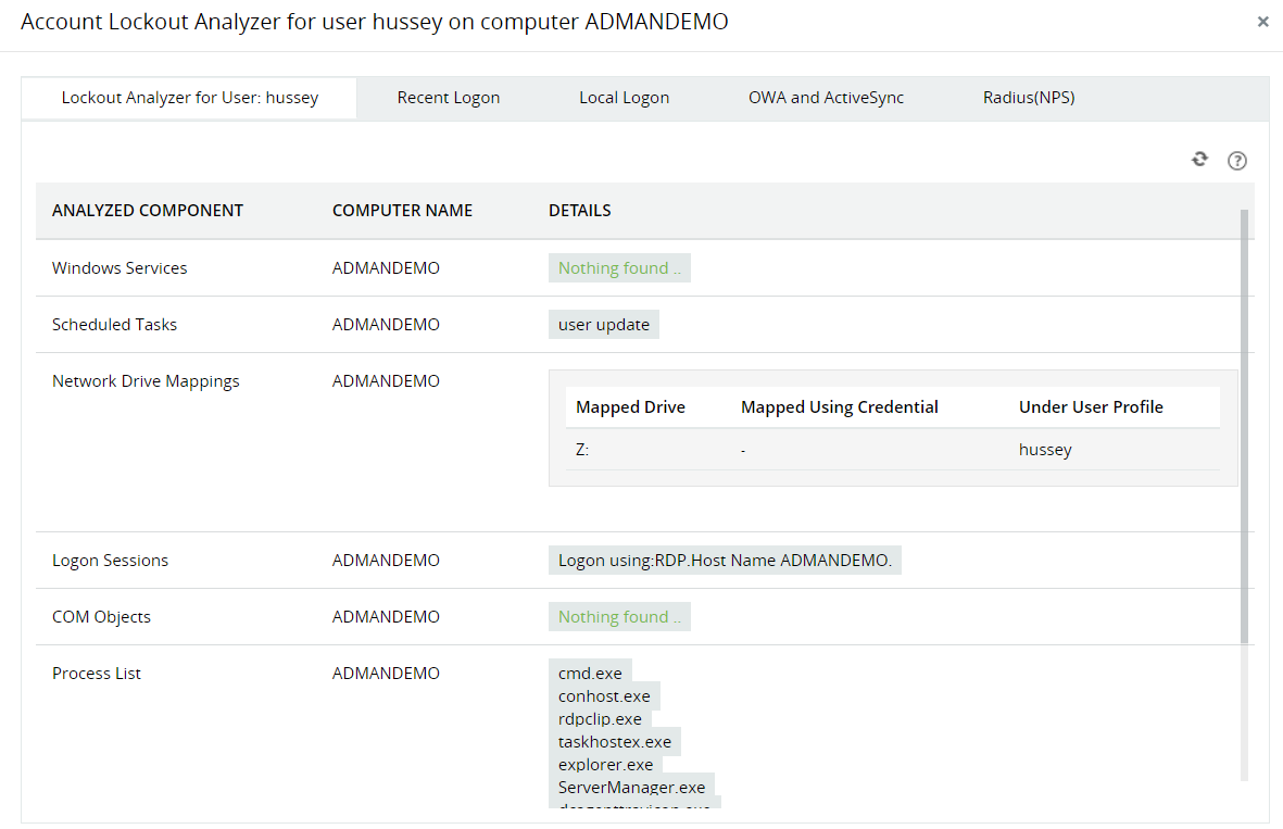 Image: The 'Analyzer Details' column in the Account Lockout report will give you details of any Netlogon issues.