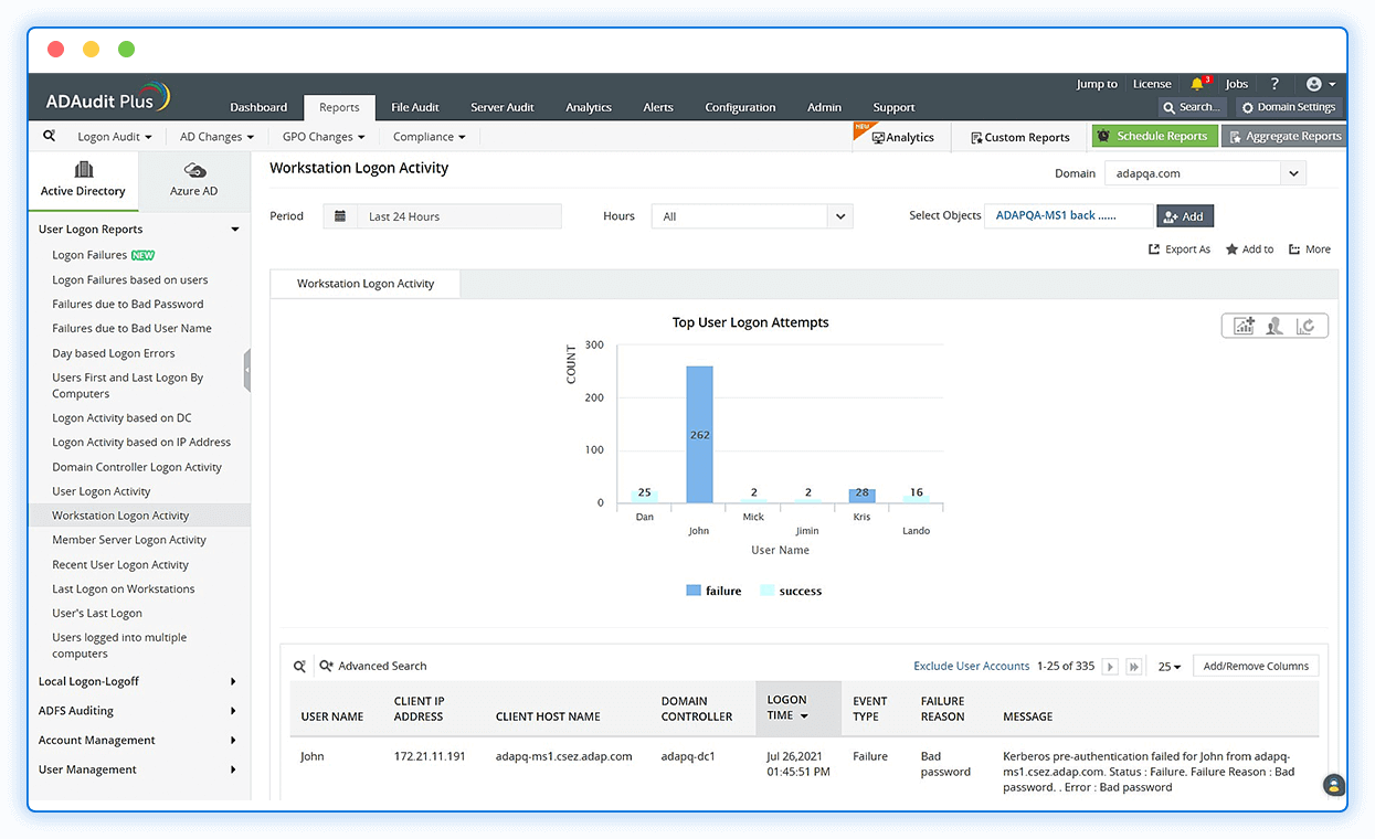 Track users' logon and logoff actions in real time using user logon audit reports.