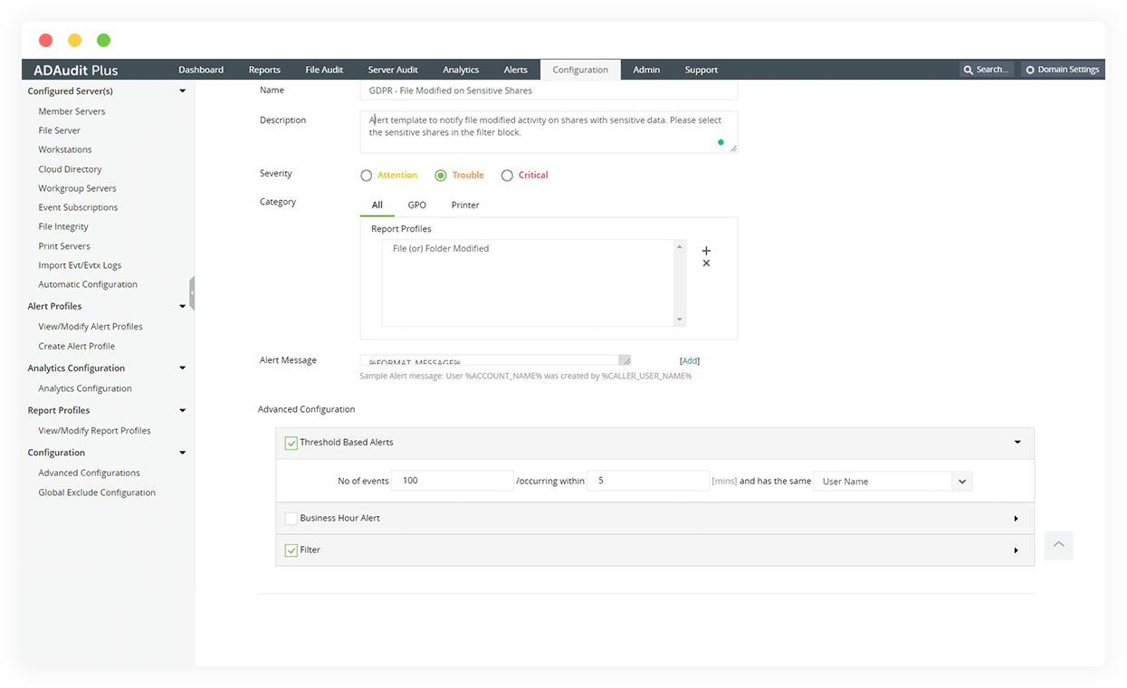Ensure accountability by maintaining a foolproof record of all file accesses and modifications along with all AD object modifications and user login information.