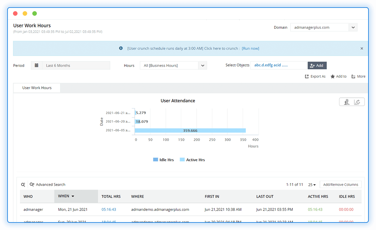Know the idle and active hours for each user by tracking system shutdowns, screensavers, logons, and more.