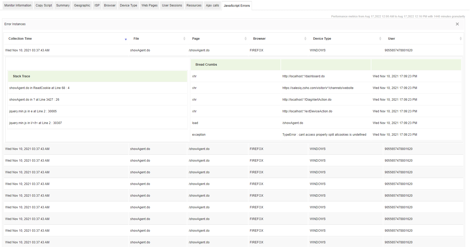 Applications Manager's end user monitoring gives you unparalled insight into the client's perspective in enterprise internet services and hosted web services. In addition to monitoring infrastructure performance, it is essential for enterprises and application service providers to also monitor applications from an end user perspective. It redefines expectations by providing real-time visibility into every facet of the end-user journey. From performance analytics to issue resolution, our services empower you to proactively enhance user experiences. By employing Applications Manager, you gain the power to exceed user expectations, ensuring every click, transaction, and interaction is met with responsiveness and reliability. Applications Manager's end user experience monitoring (EUEM) solution can help enterprises monitor end user experience of web applications.
