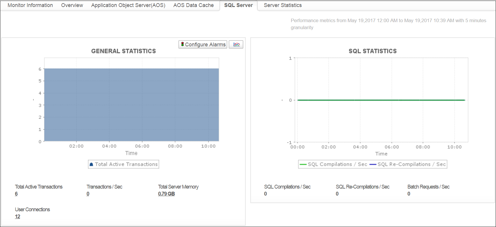 Given that your Dynamics AX server runs on an SQL database, the health and performance of the database is extremely crucial in ensuring that you are receiving maximum value from your AX server. This can only be ensured by tracking key SQL server stats time and again to check and identify bottlenecks and eliminate them. Applications Manager monitors all critical SQL stats like user connections, active transactions, SQL compilations, server memory, etc. Tracking these critical metrics helps identify potential issues and make vital business decisions with confidence.