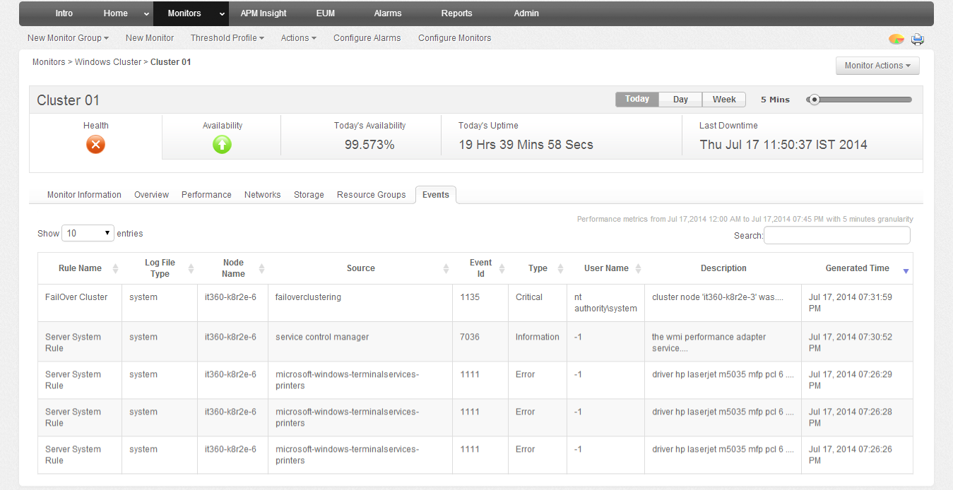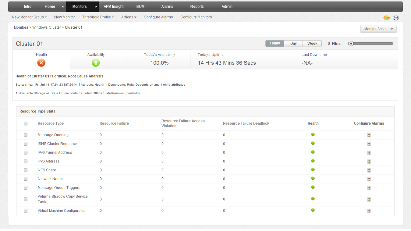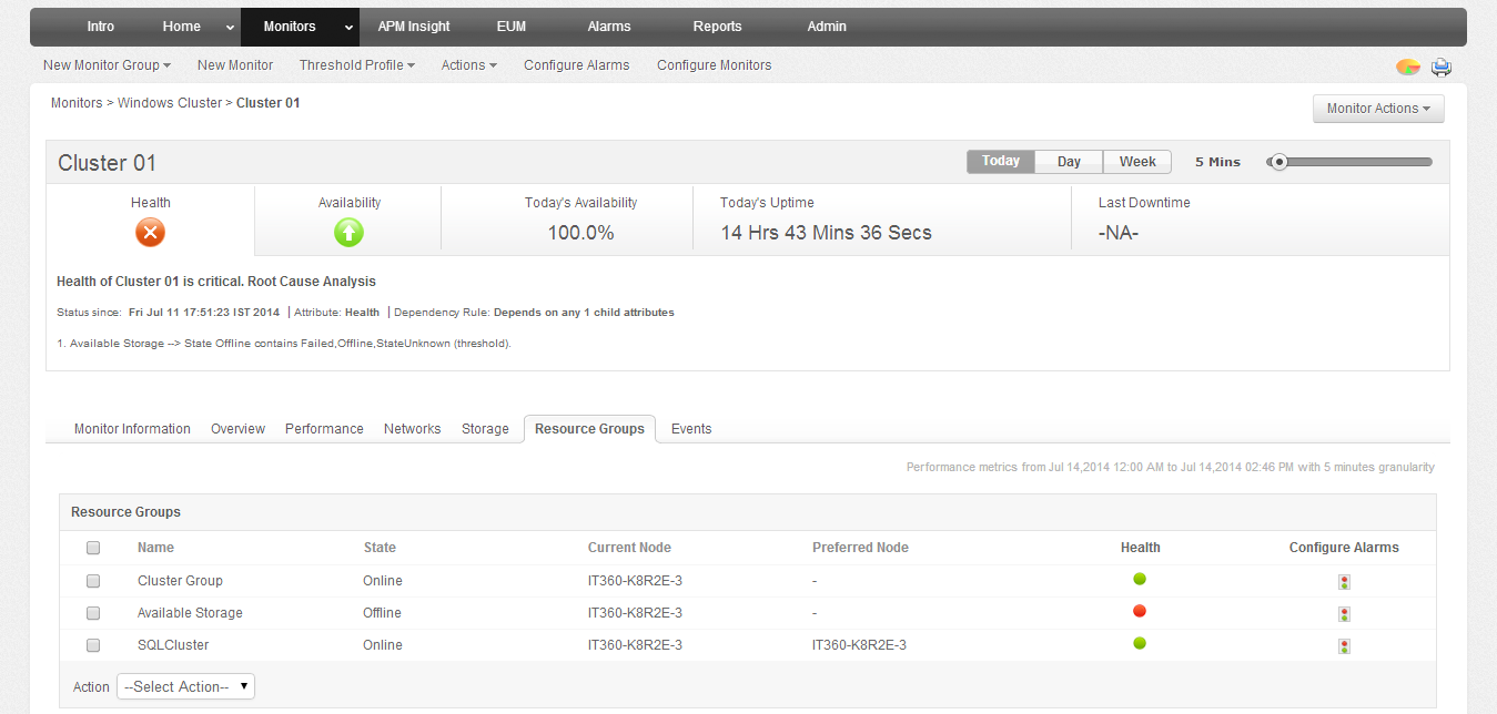 - Determine the root cause of problems faster and minimize risks associated with performance outages in your windows cluster.