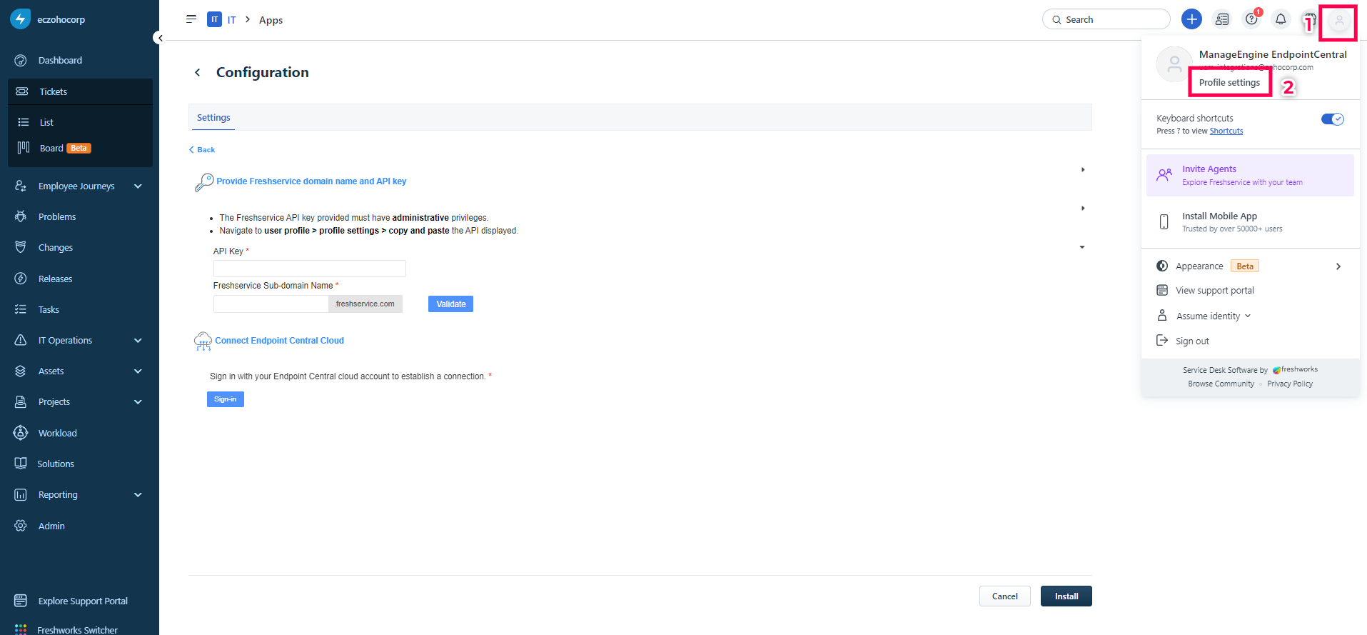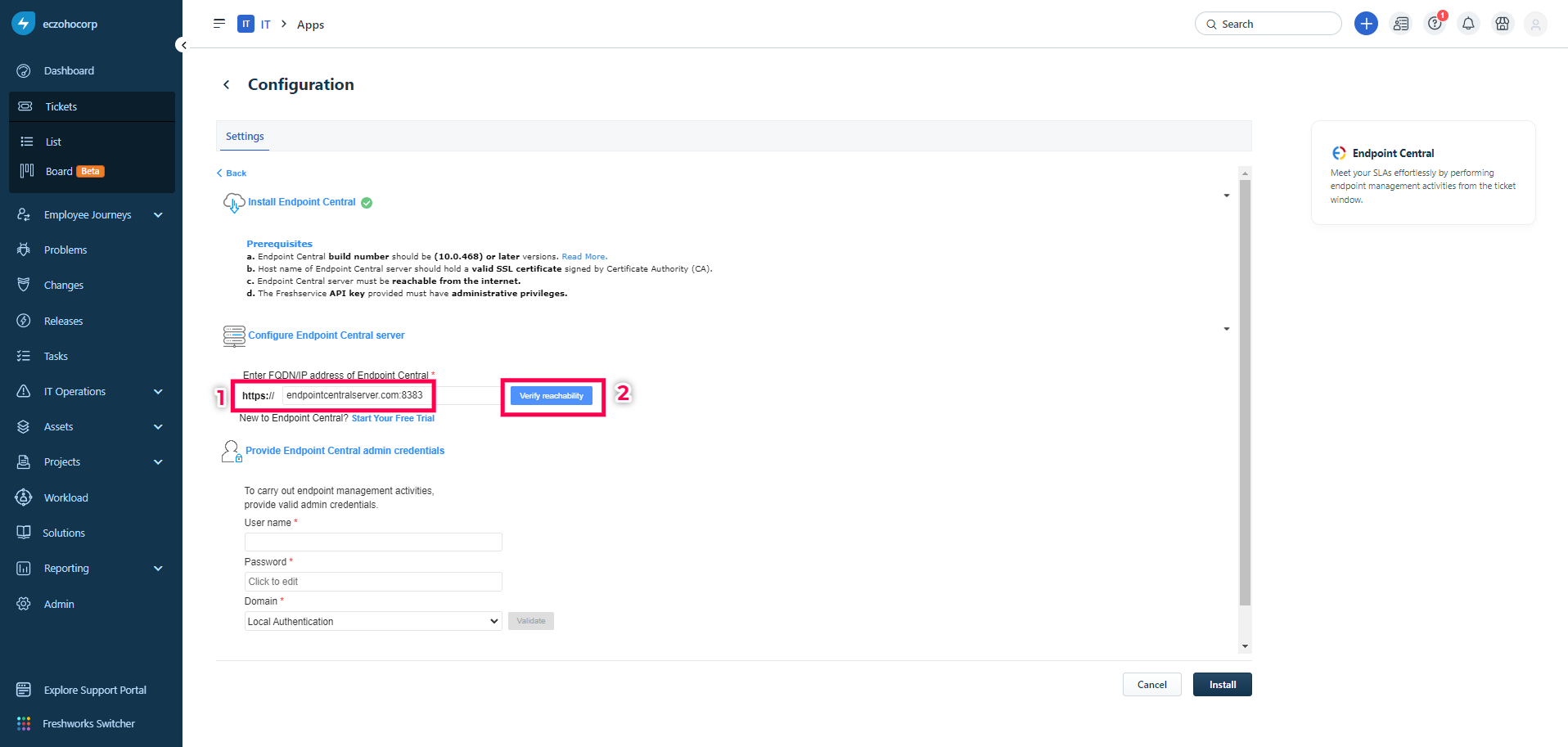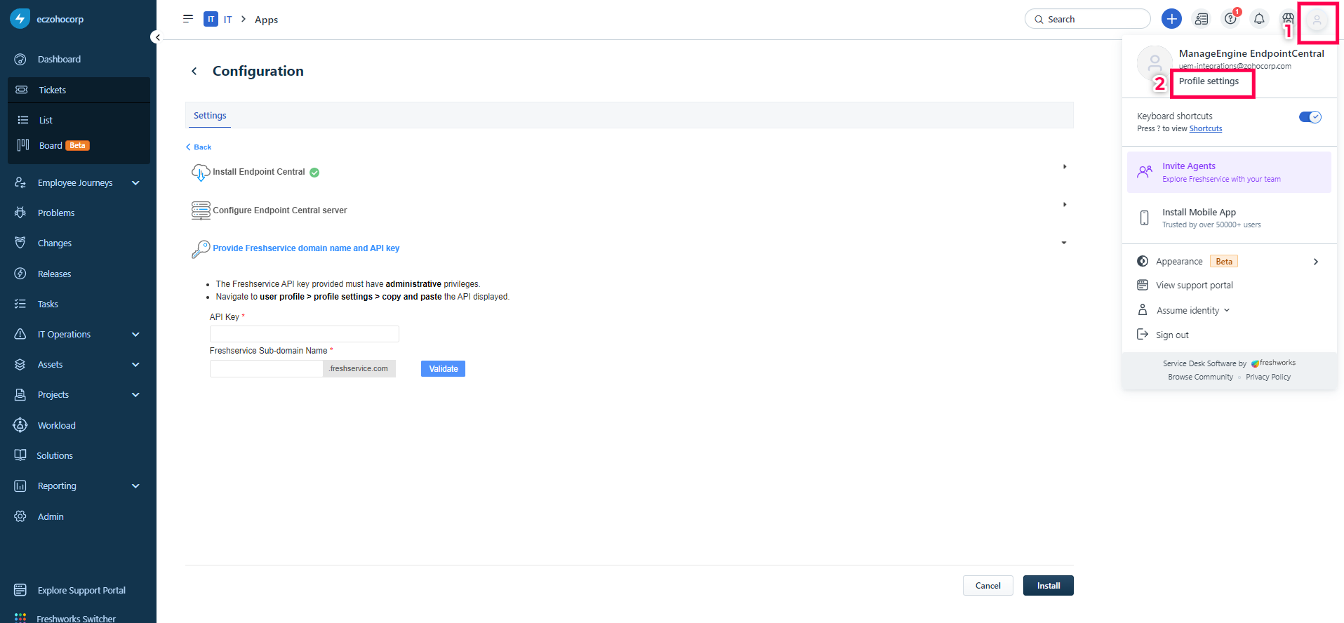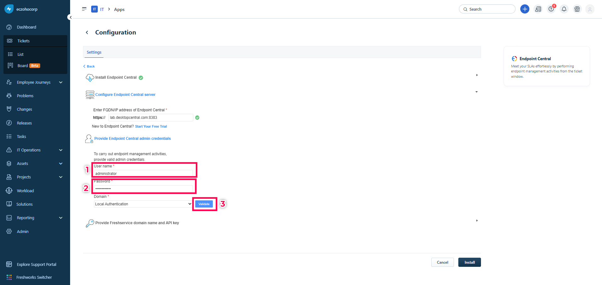 Integrate Endpoint Central with Freshservice