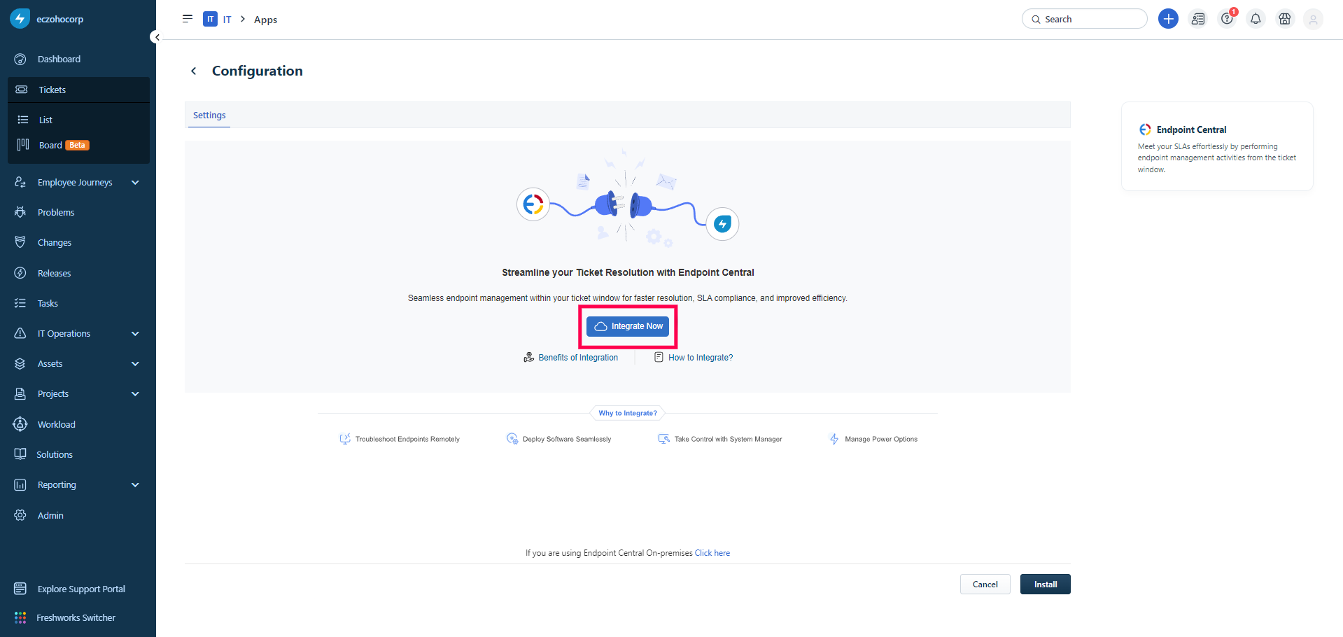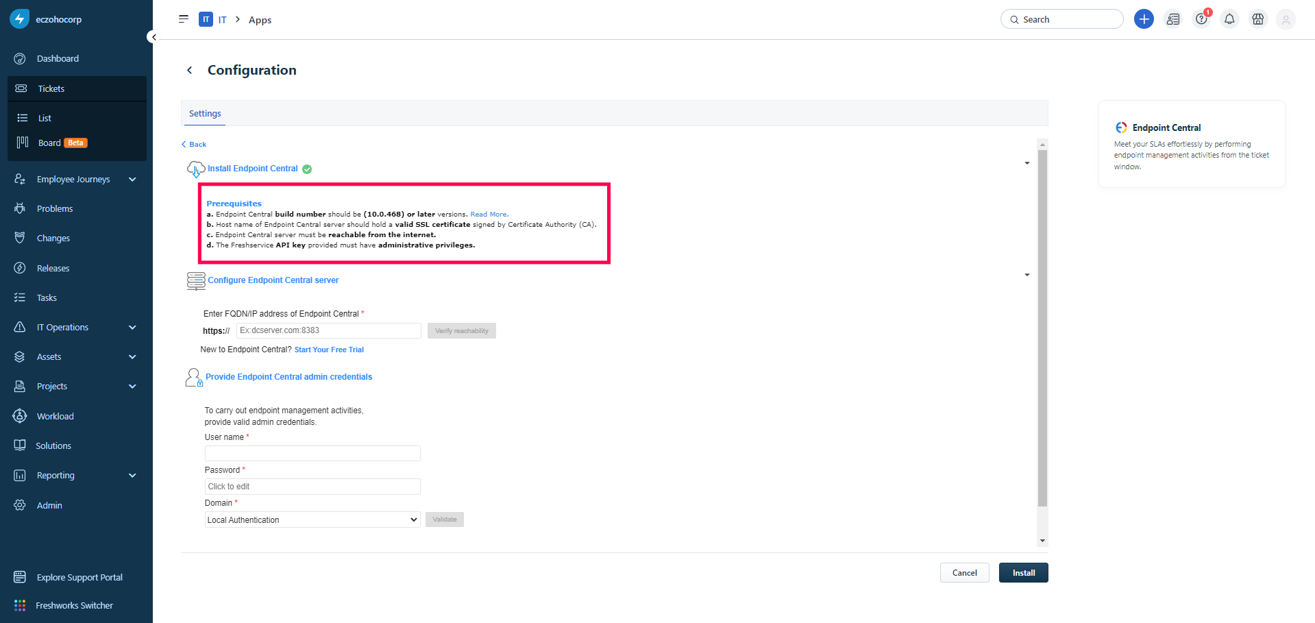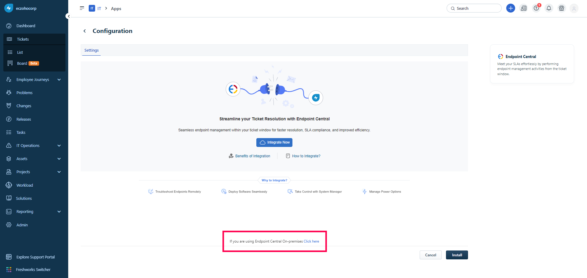 Integrate Endpoint Central with Freshservice