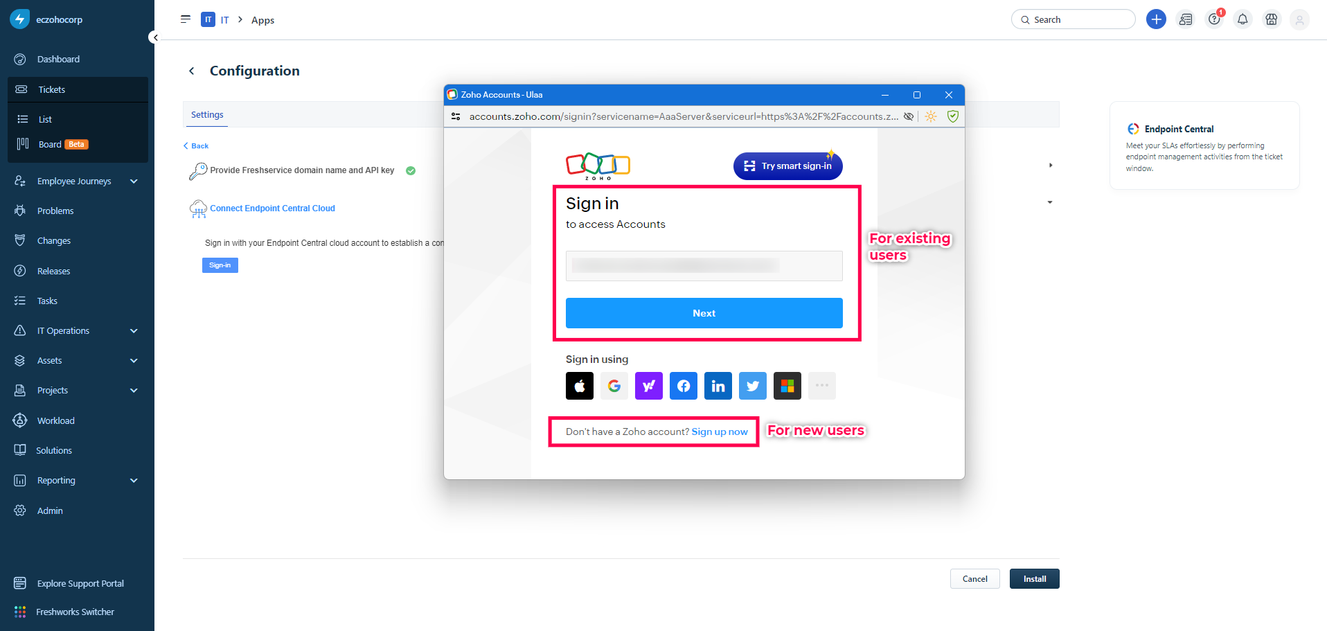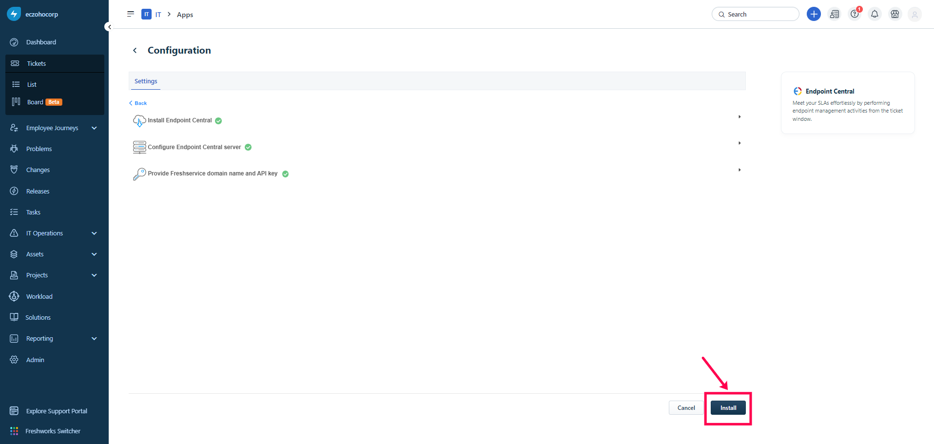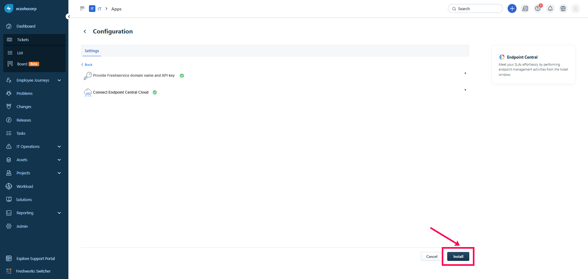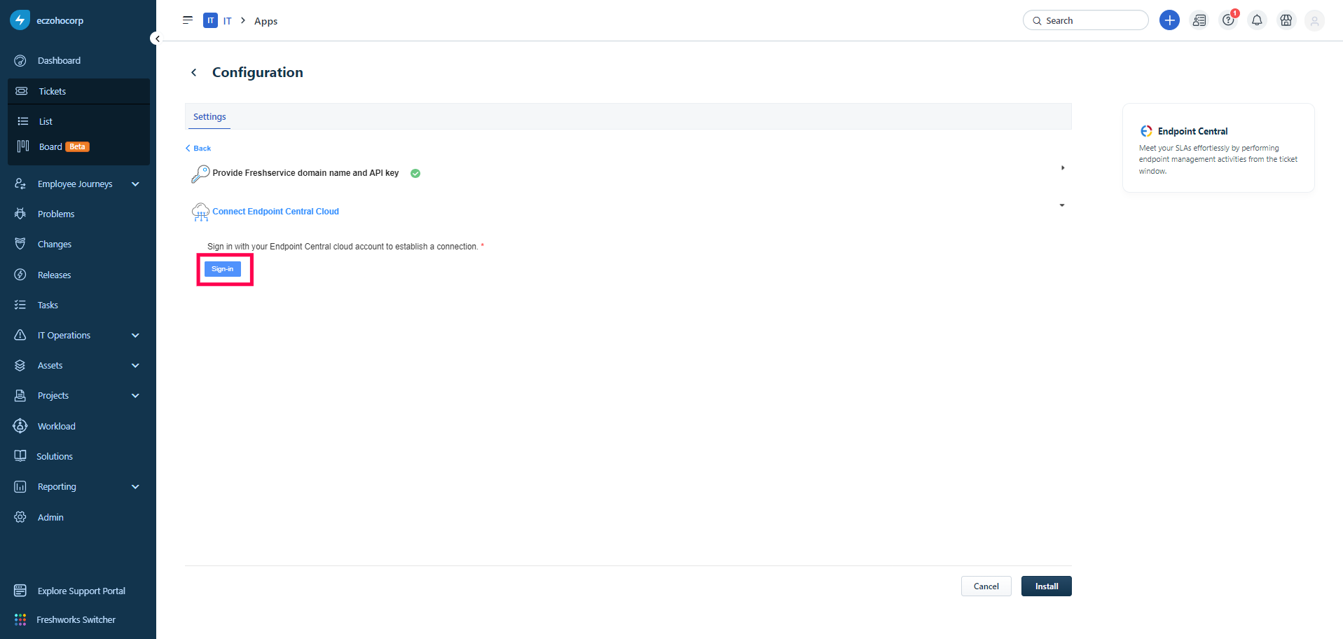 Integrate Endpoint Central with Freshservice