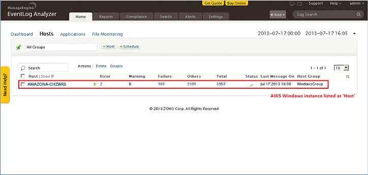 Ensure that EventLog Analyzer server can access EC2 Windows instance.