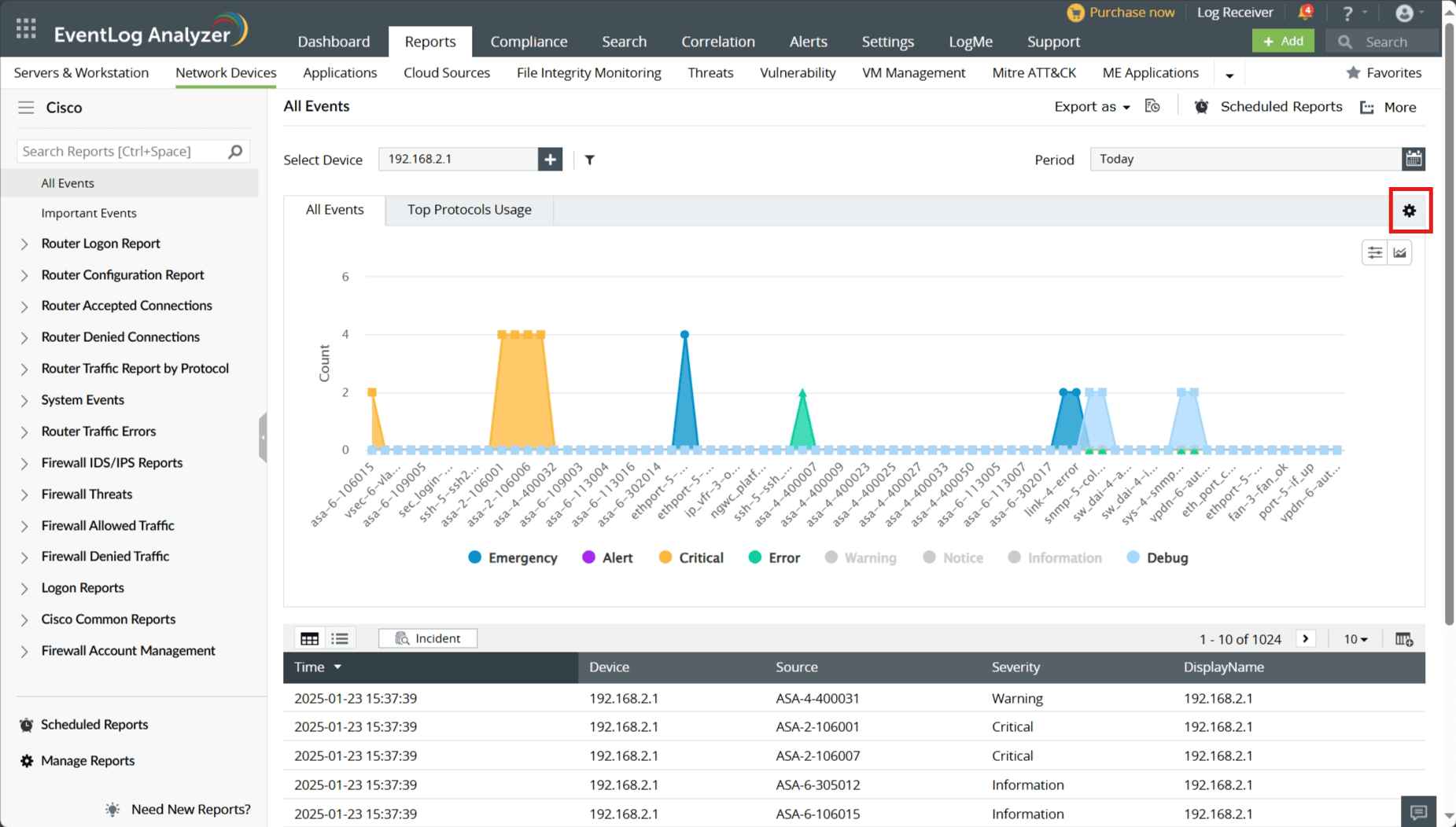 EventLog Analyzer allows you to create multiple views of the same report. This enables you to view the report based on different parameters such as time, domain, source, etc. The different views will be generated from the same set of log data.