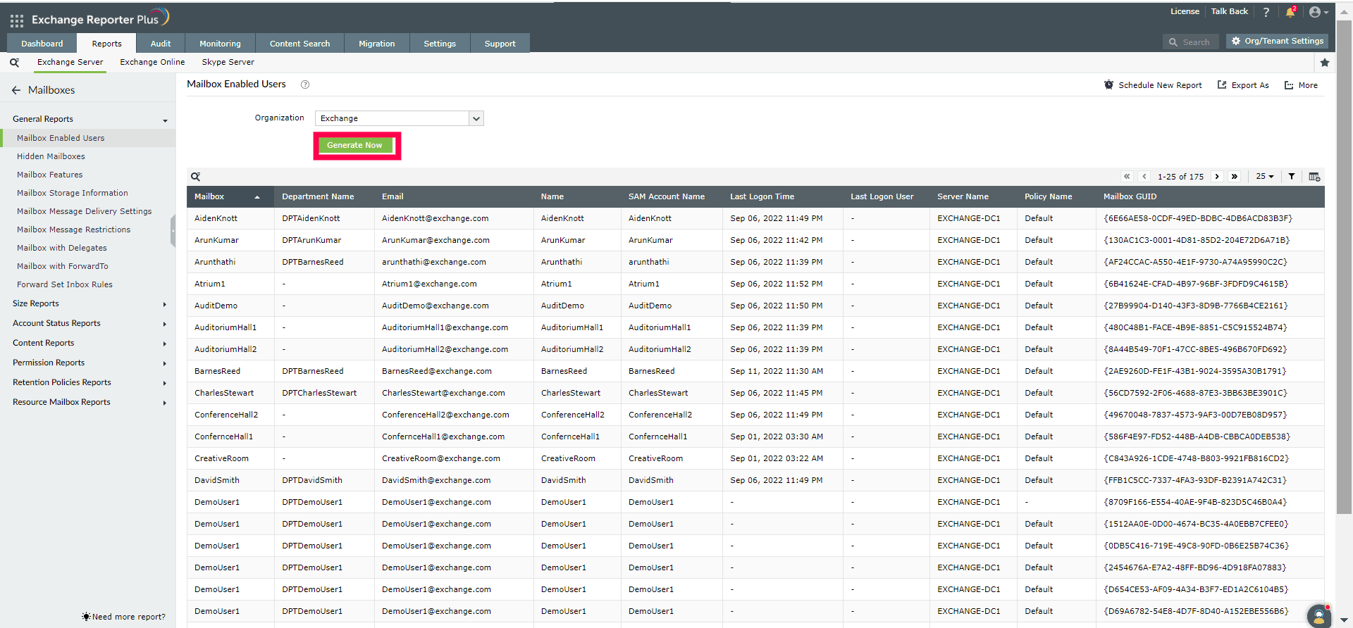 ManageEngine Exchange Reporter Plus, an extensive tool used for reporting, auditing, monitoring, and creating alerts for critical activities in your Exchange environment, simplifies this task with the Mailbox Enabled Users report.