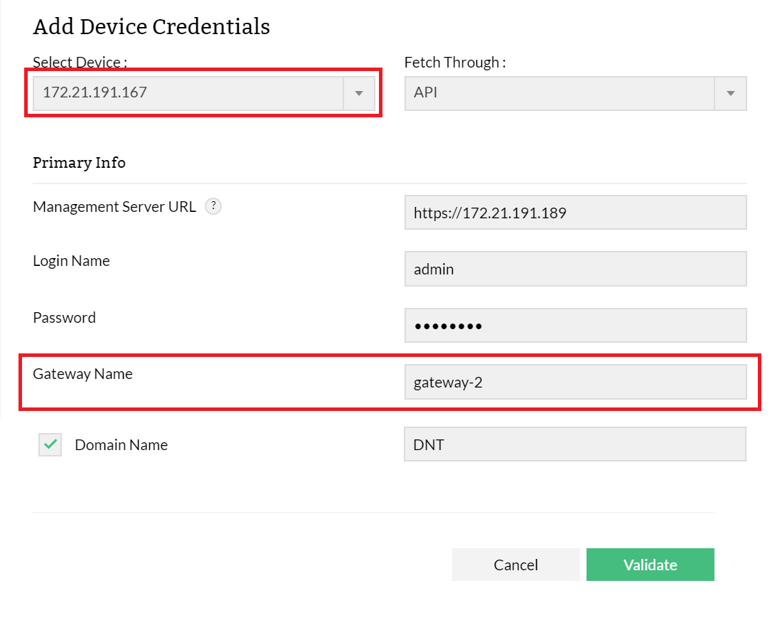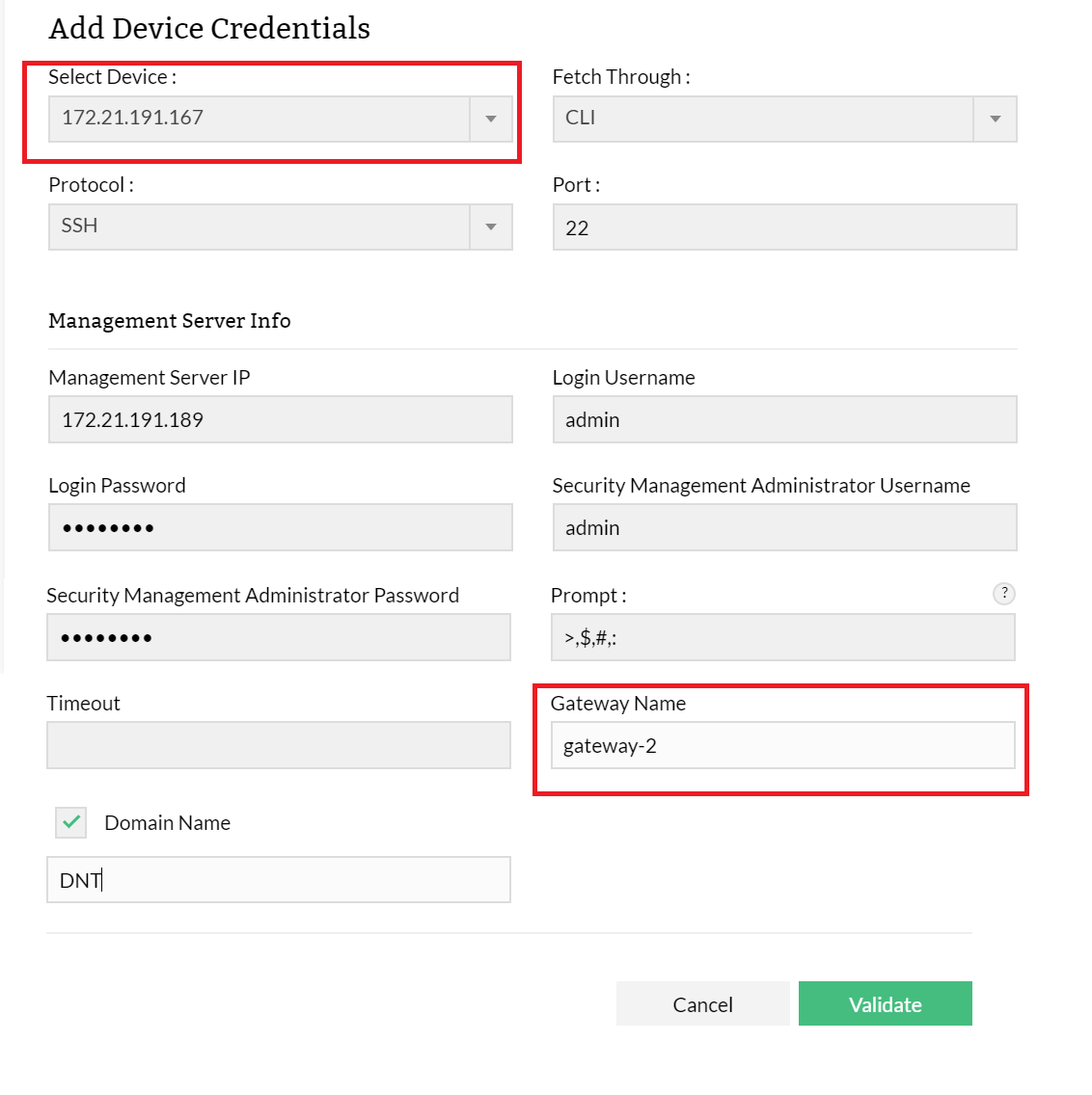 | Firewall IP Address | Enter IP address of the firewal for credential configure. See Note below. |
