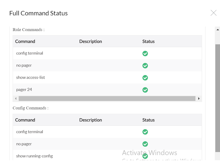 | Status | The status of fetching device rules/access control of the Firewall device |