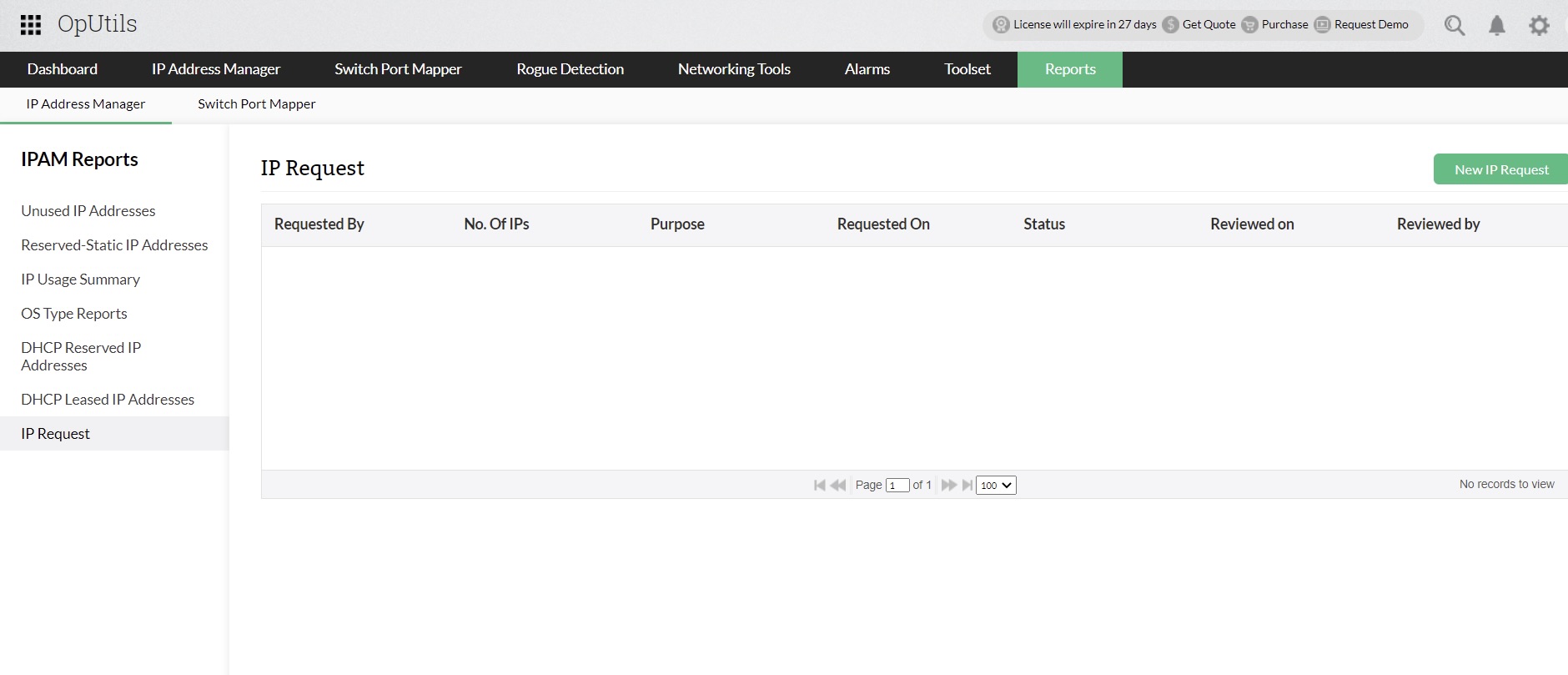 1. Go to Reports > IPAM Reports, and click on IP Request.