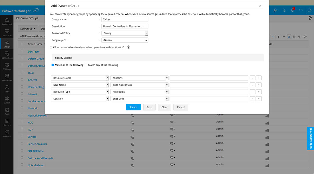 8. Once you specify the criteria, click "Search" if you want to view the list of resources that will become part of this group.