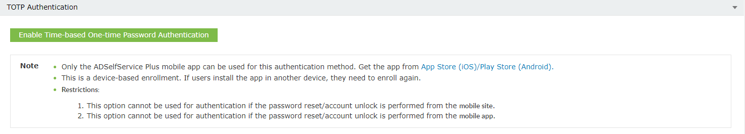 TOTP Authentication for MFA can be enabled with minimal steps in ADSelfService Plus