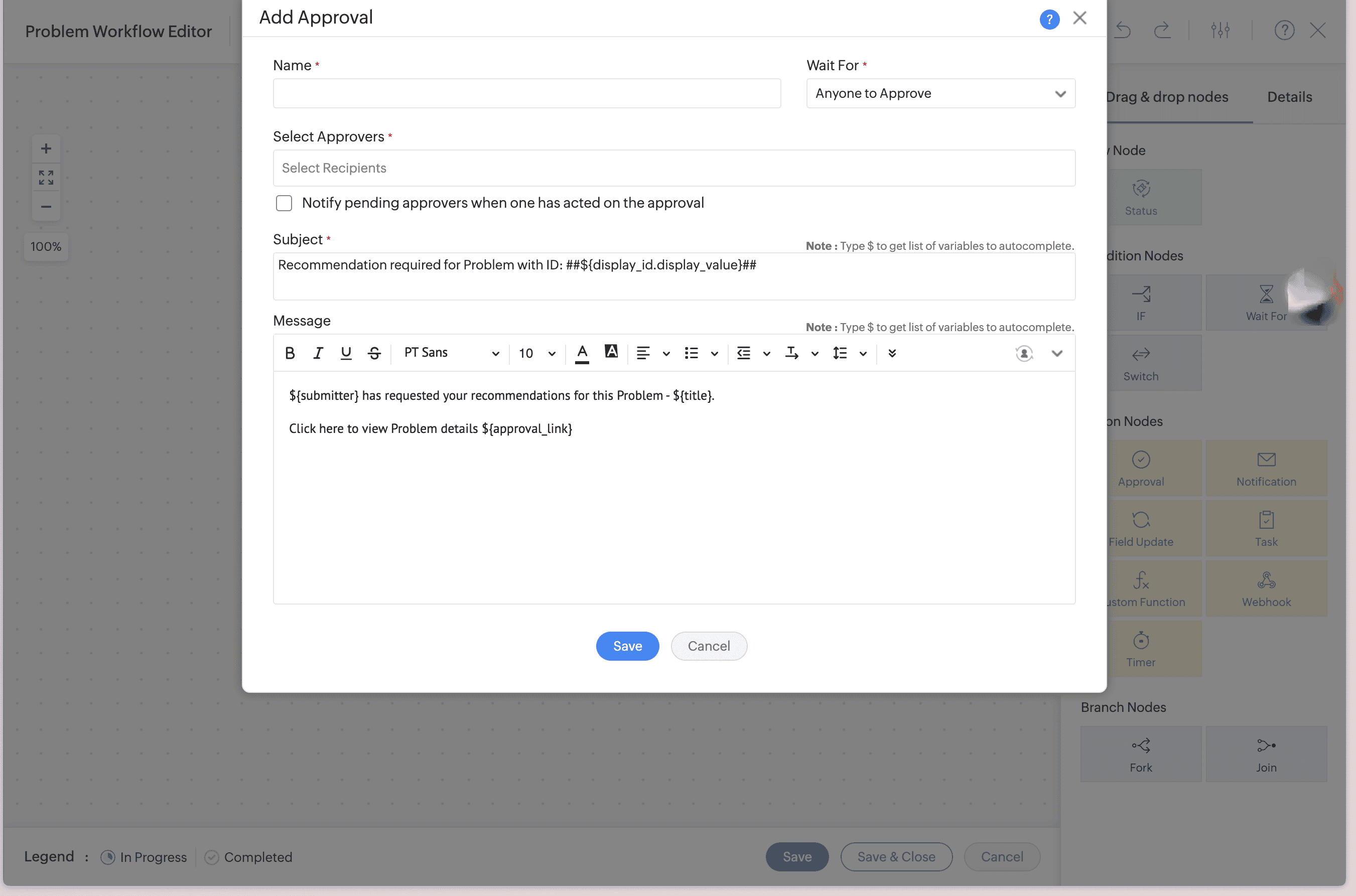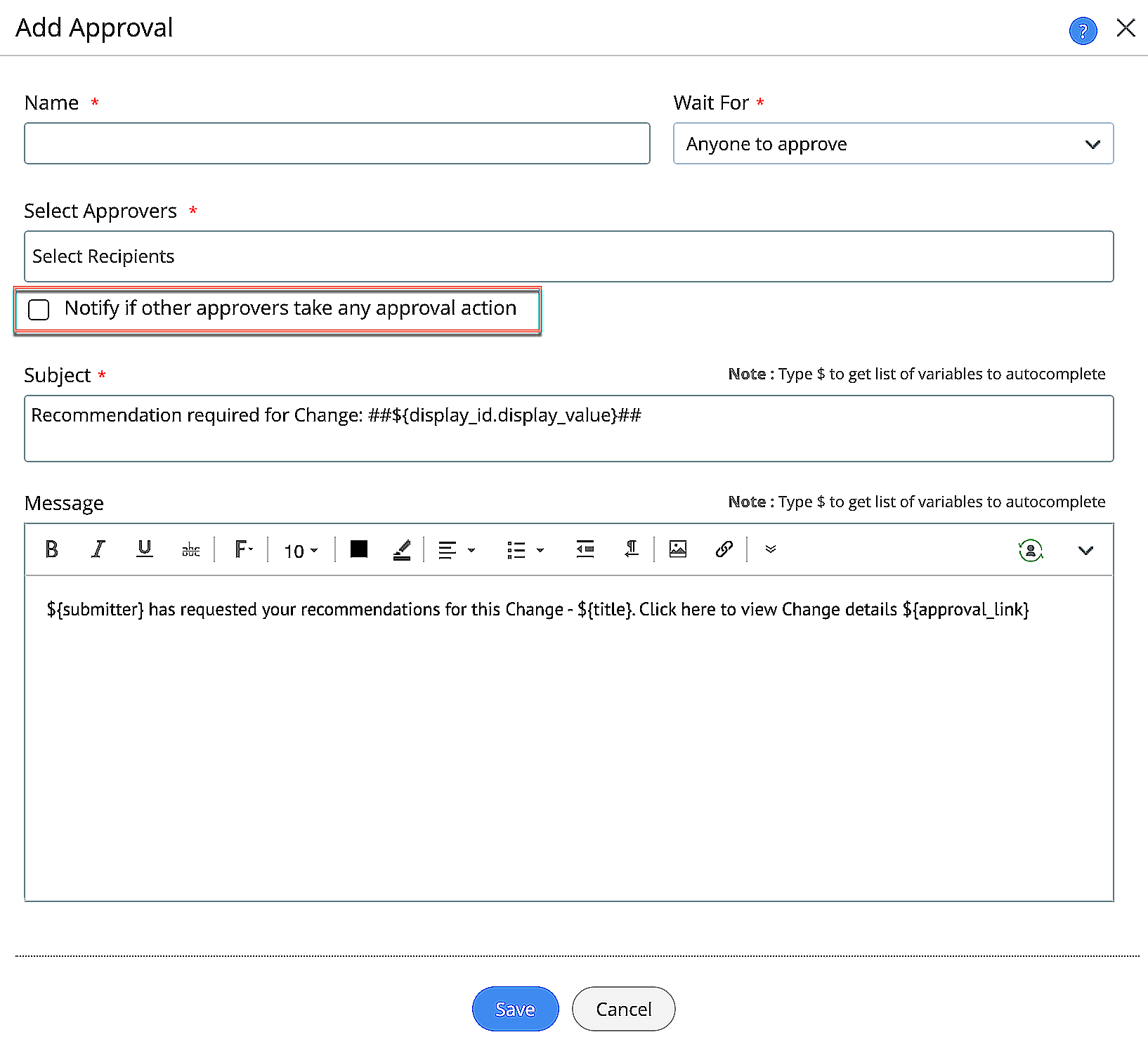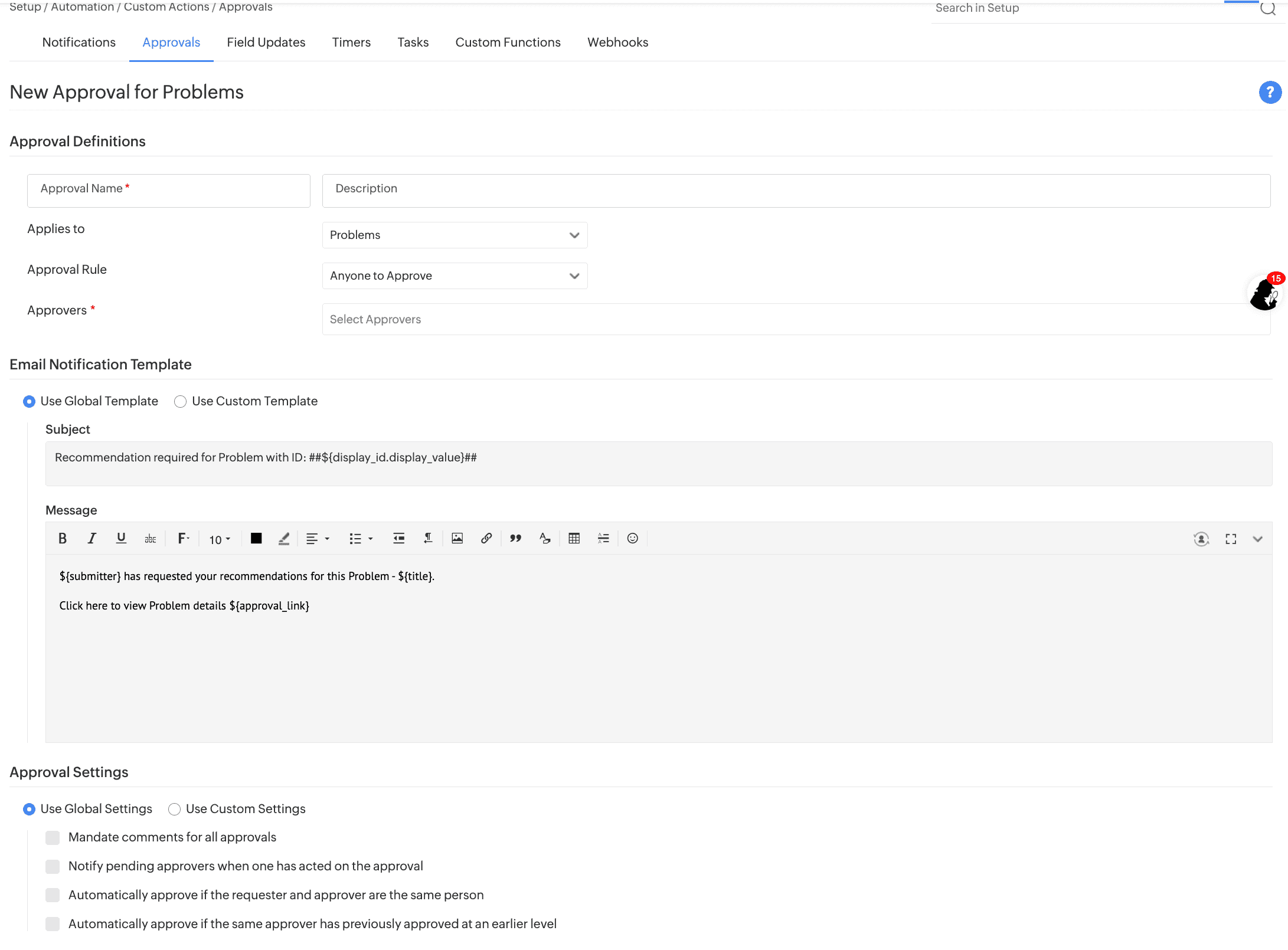 It is now possible to configure the system to stop the timer for those tickets that are awaiting approval. If stop timer is enabled, timer will be automatically stopped for requests. You can also configure the status that must be set while the request ticket awaits approval.