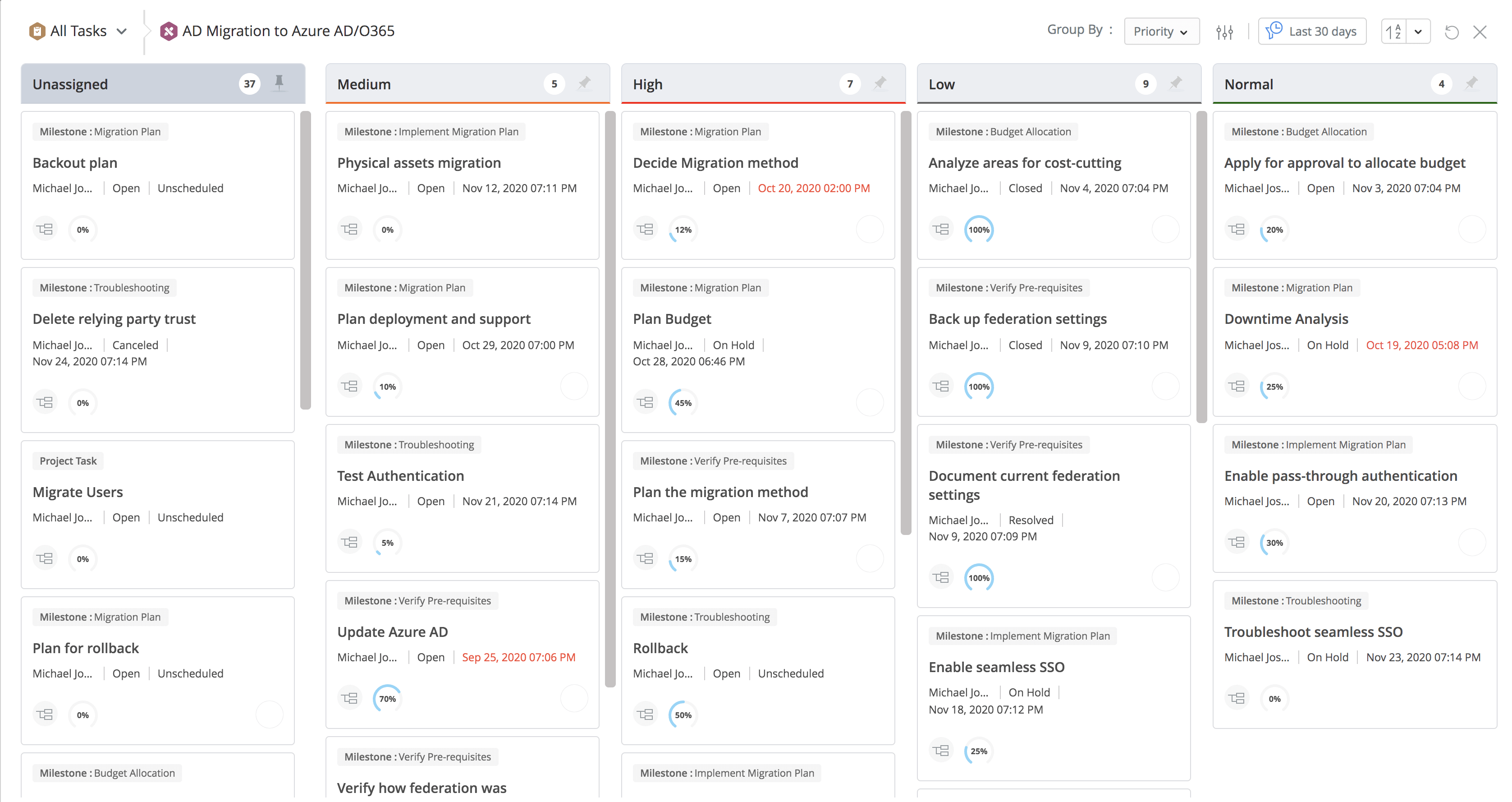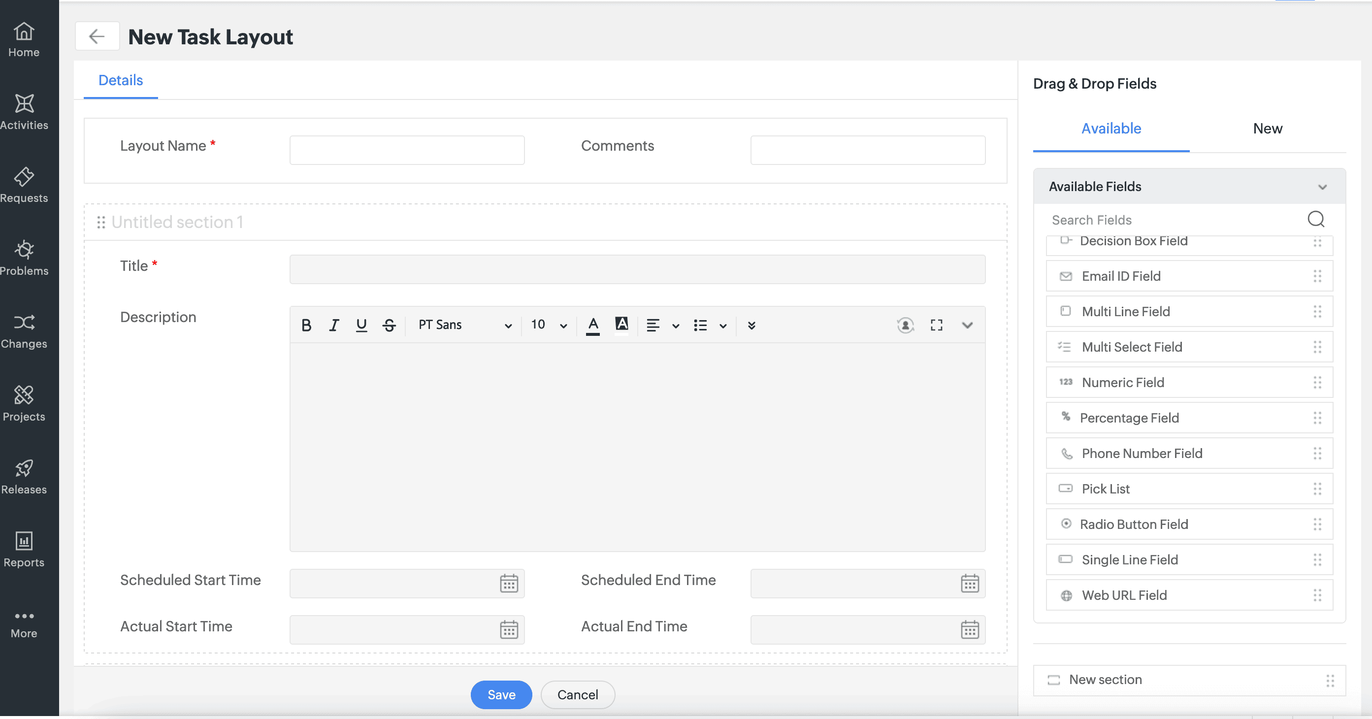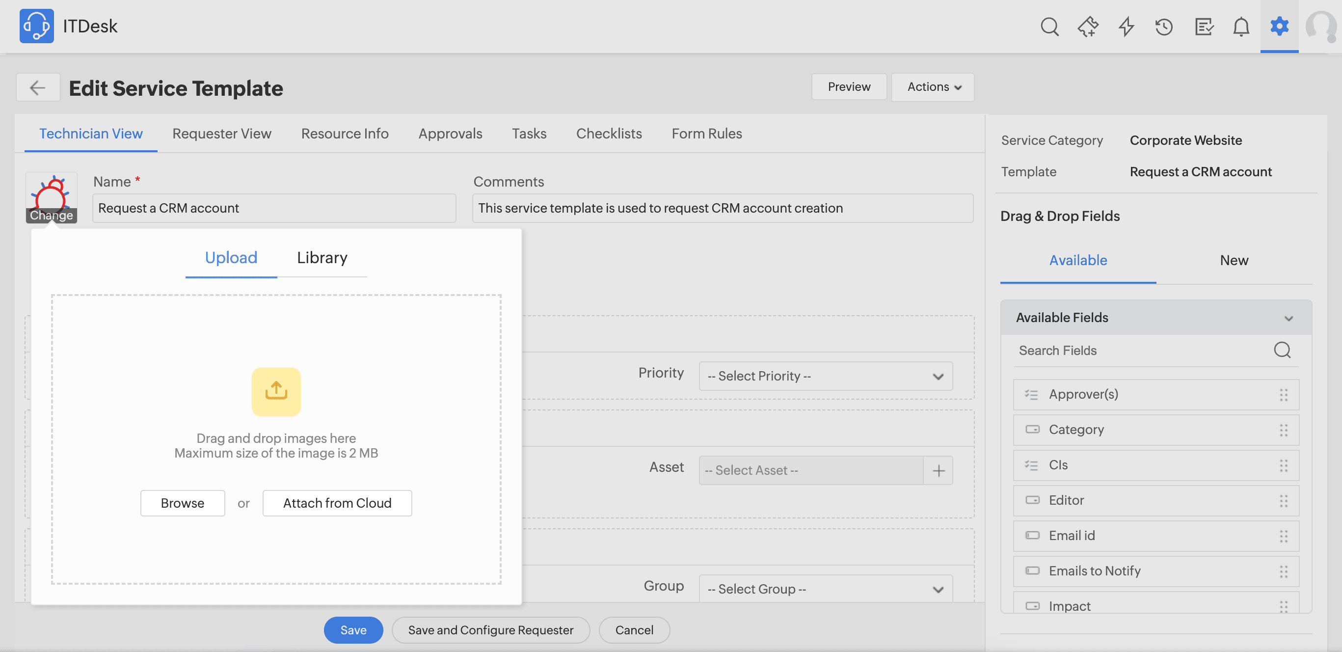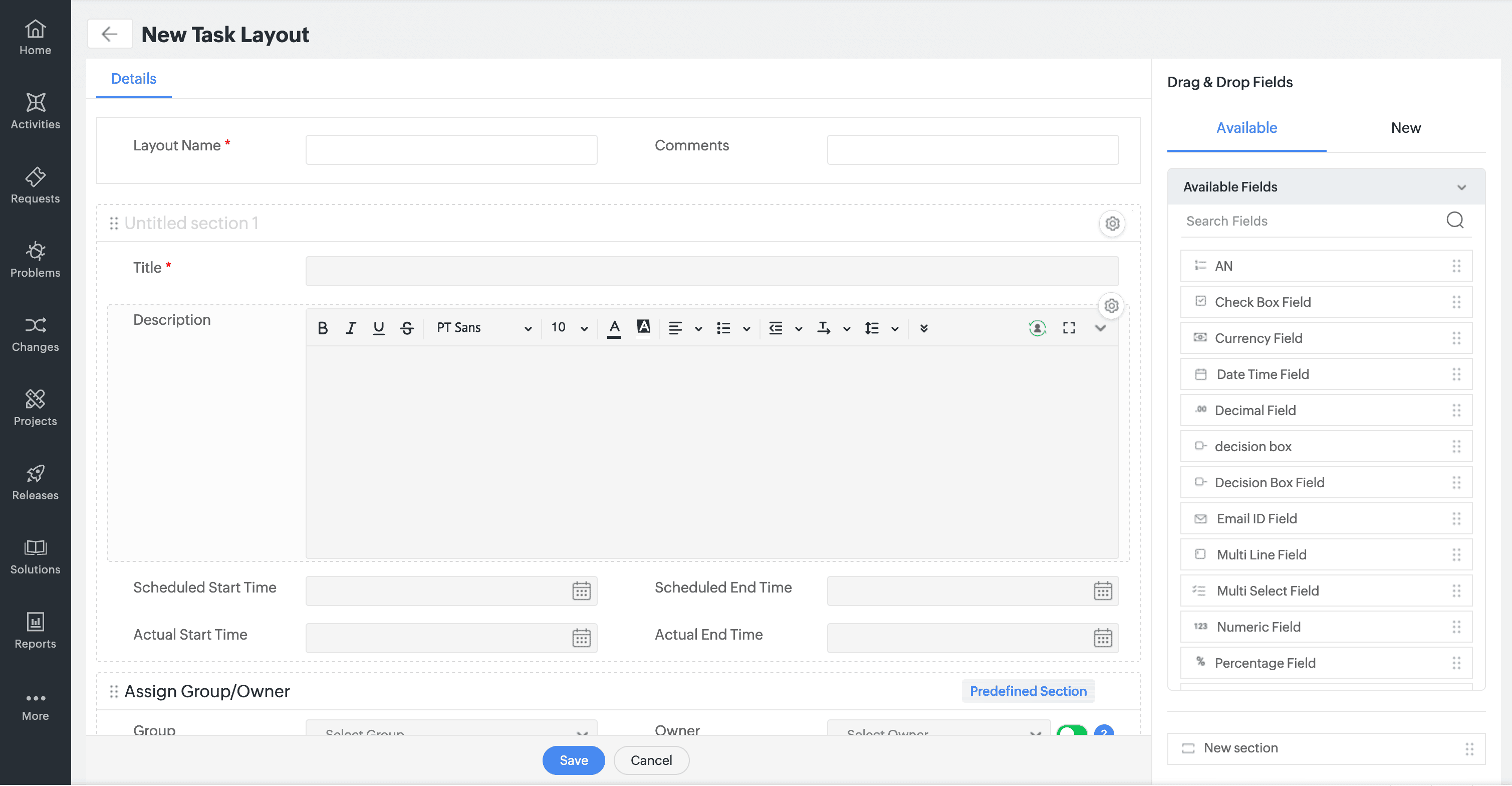 In typical help desk environments, there would be requirements to assign the same or similar tasks to different users at different times. Adding the tasks afresh every time leads to waste of time and resources. To overcome this, 'Task Templates' are provided. Templates can be created with details about the task and they could be assigned to users instantly without having to fill the details. Task Templates can be used for adding tasks on a request, problem or change.