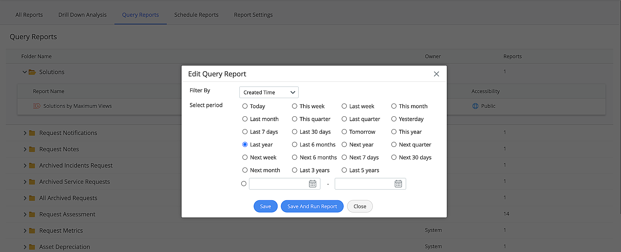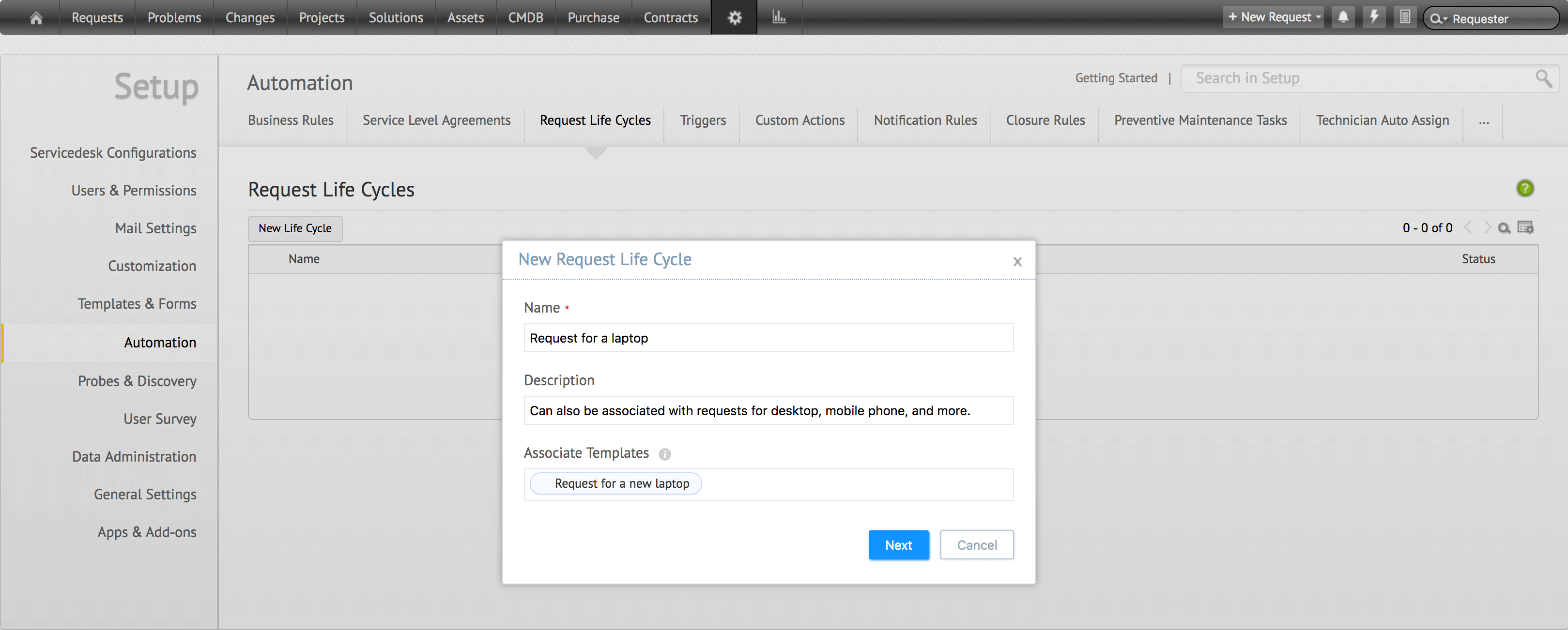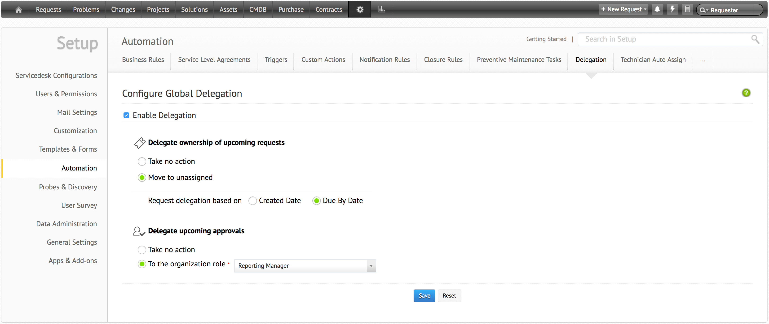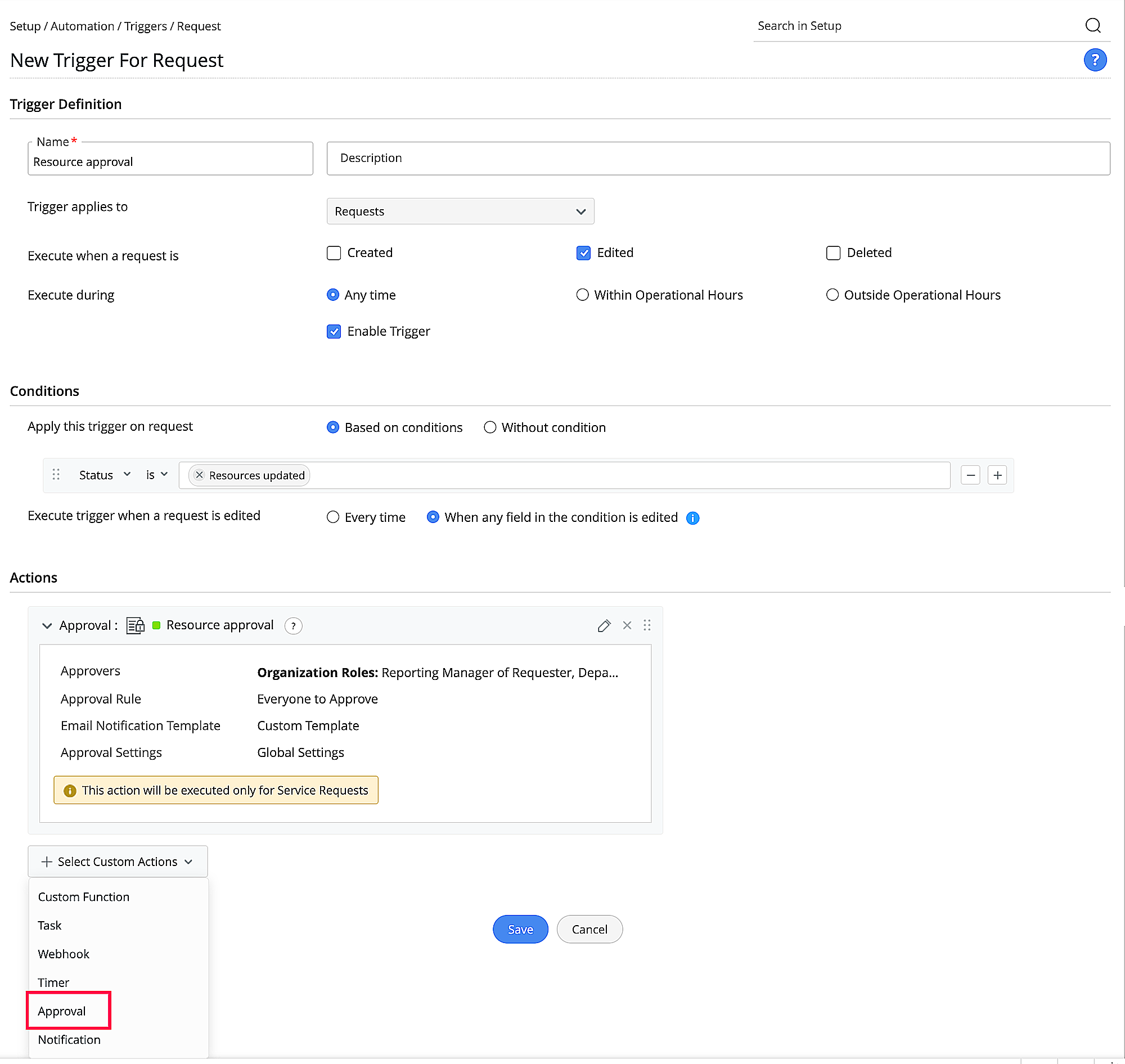 Based on request resources, you can now generate reports in ServiceDesk Plus Cloud and Zoho Analytics, and execute automation rules such as Business Rules, Triggers, Timers, Workflows, and Service Level Agreements.