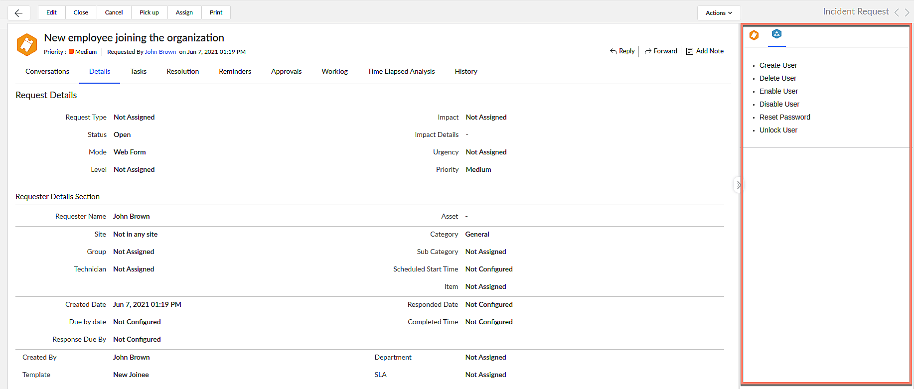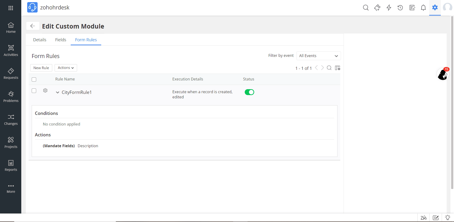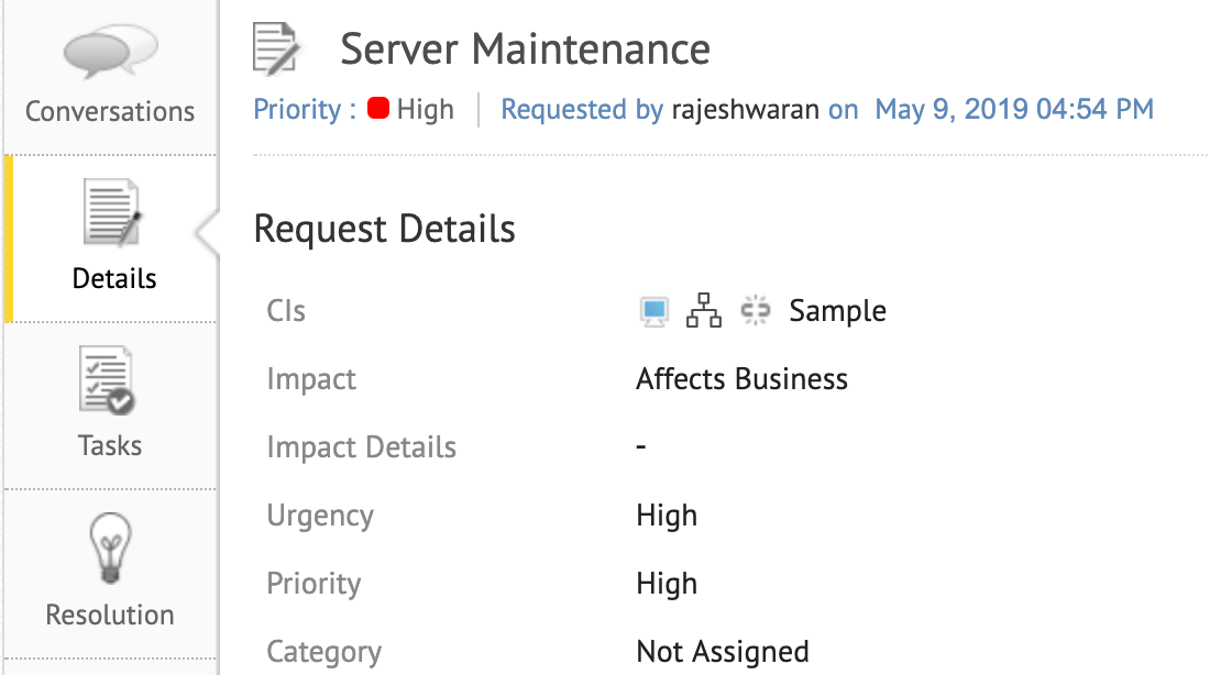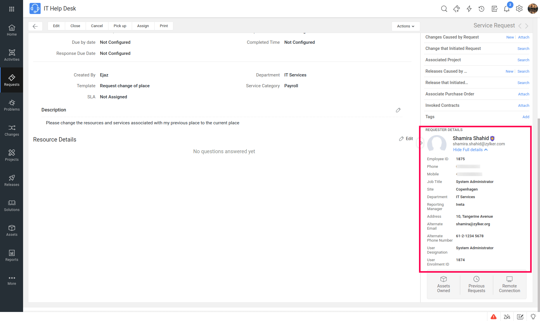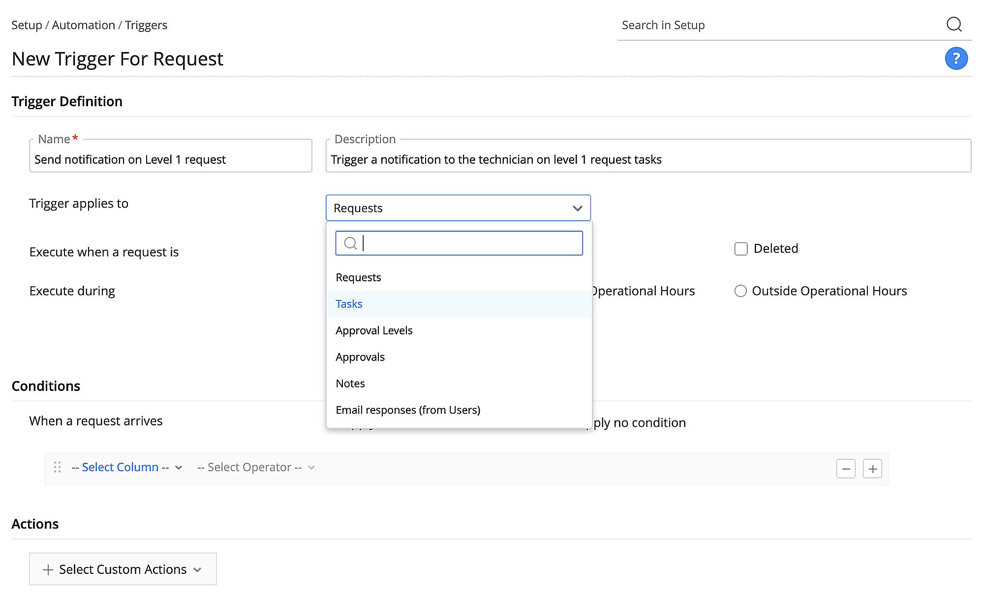 Based on request resources, you can now generate reports in ServiceDesk Plus Cloud and Zoho Analytics, and execute automation rules such as Business Rules, Triggers, Timers, Workflows, and Service Level Agreements.