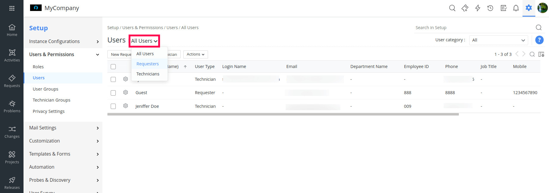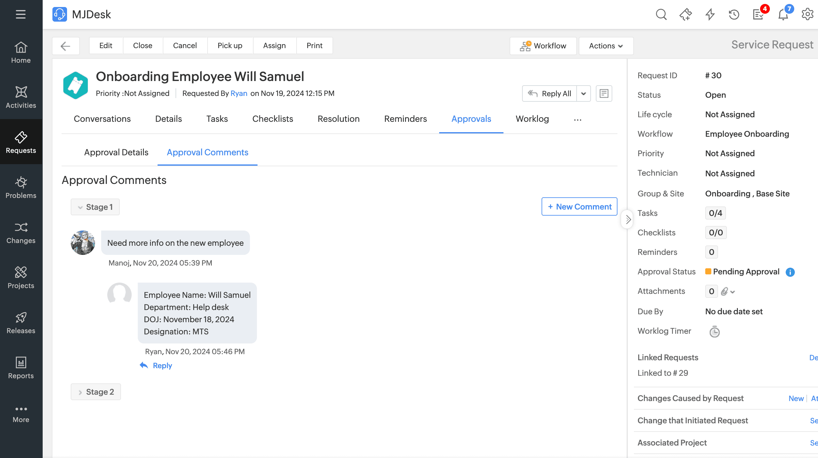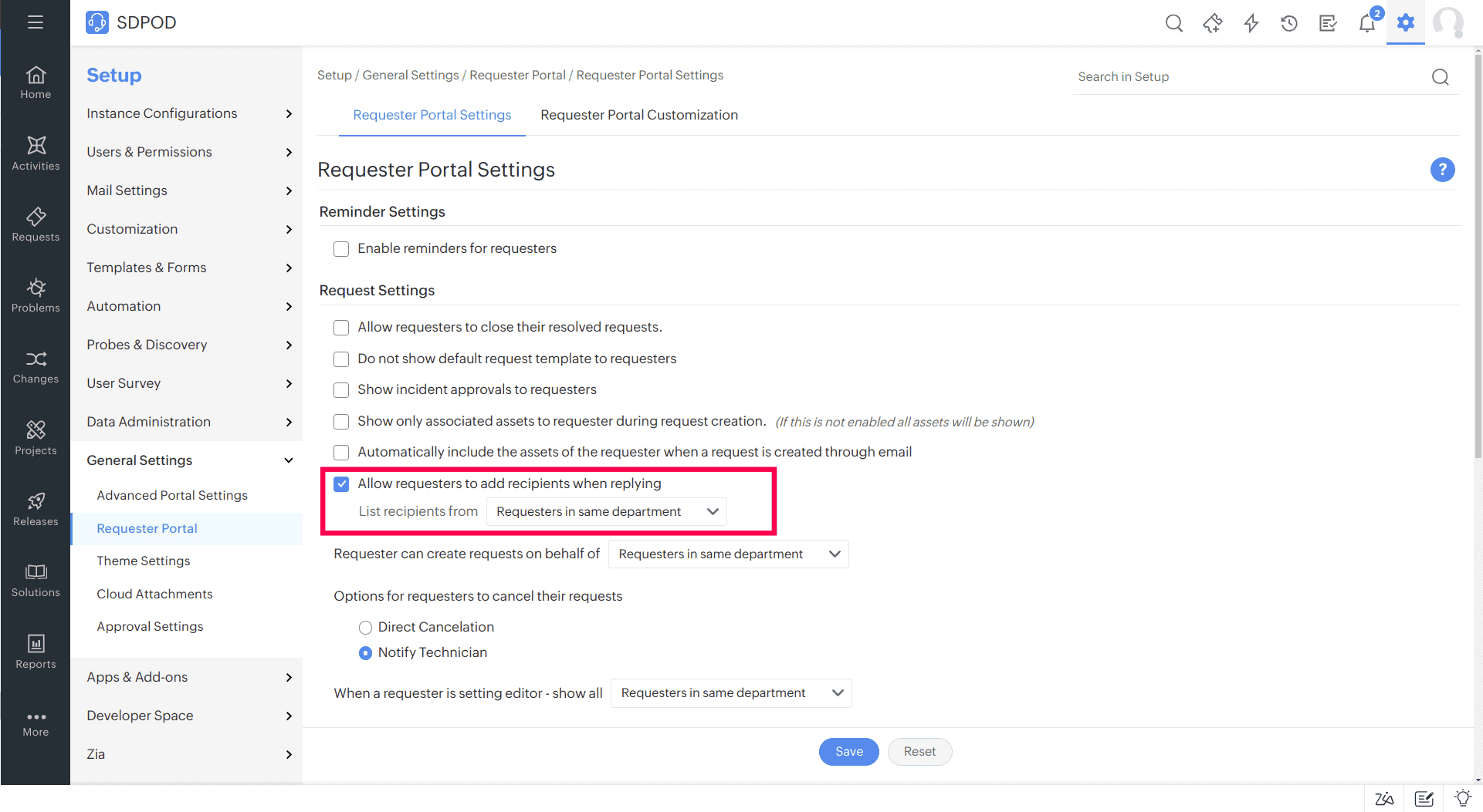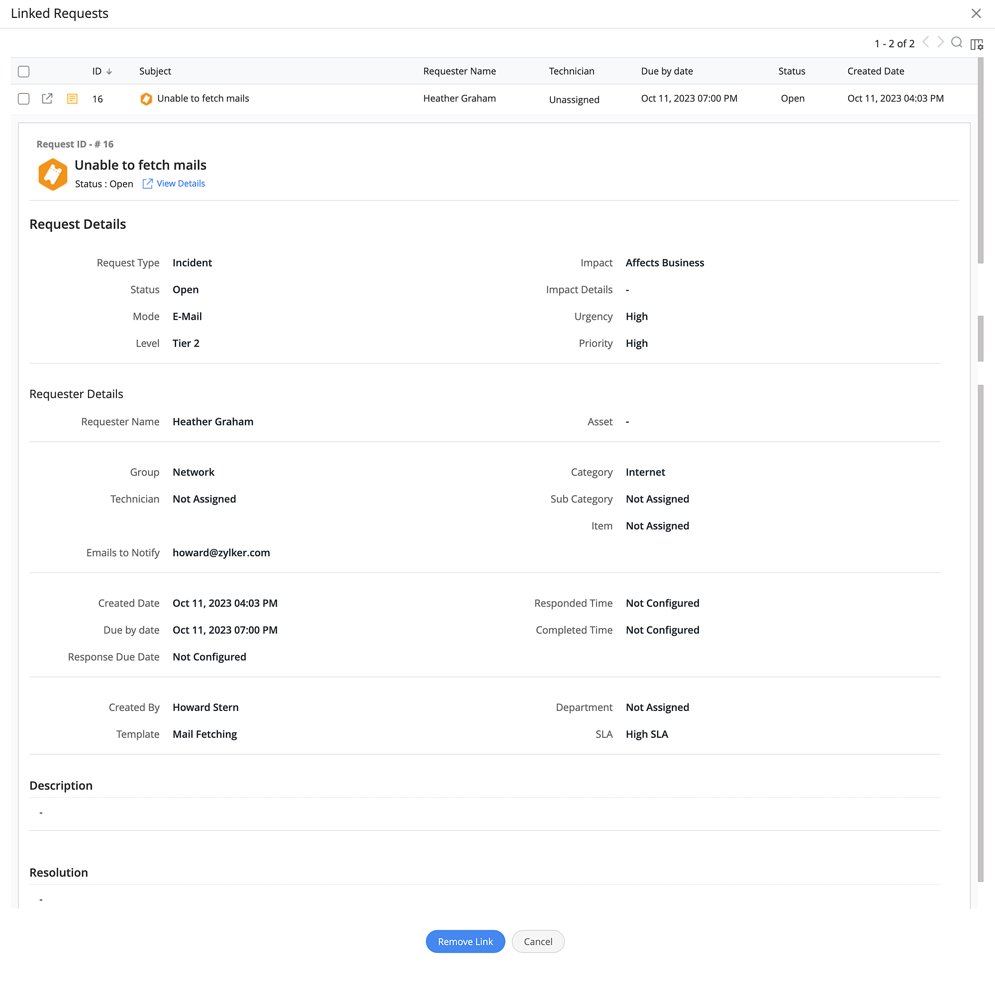 Based on request resources, you can now generate reports in ServiceDesk Plus Cloud and Zoho Analytics, and execute automation rules such as Business Rules, Triggers, Timers, Workflows, and Service Level Agreements.