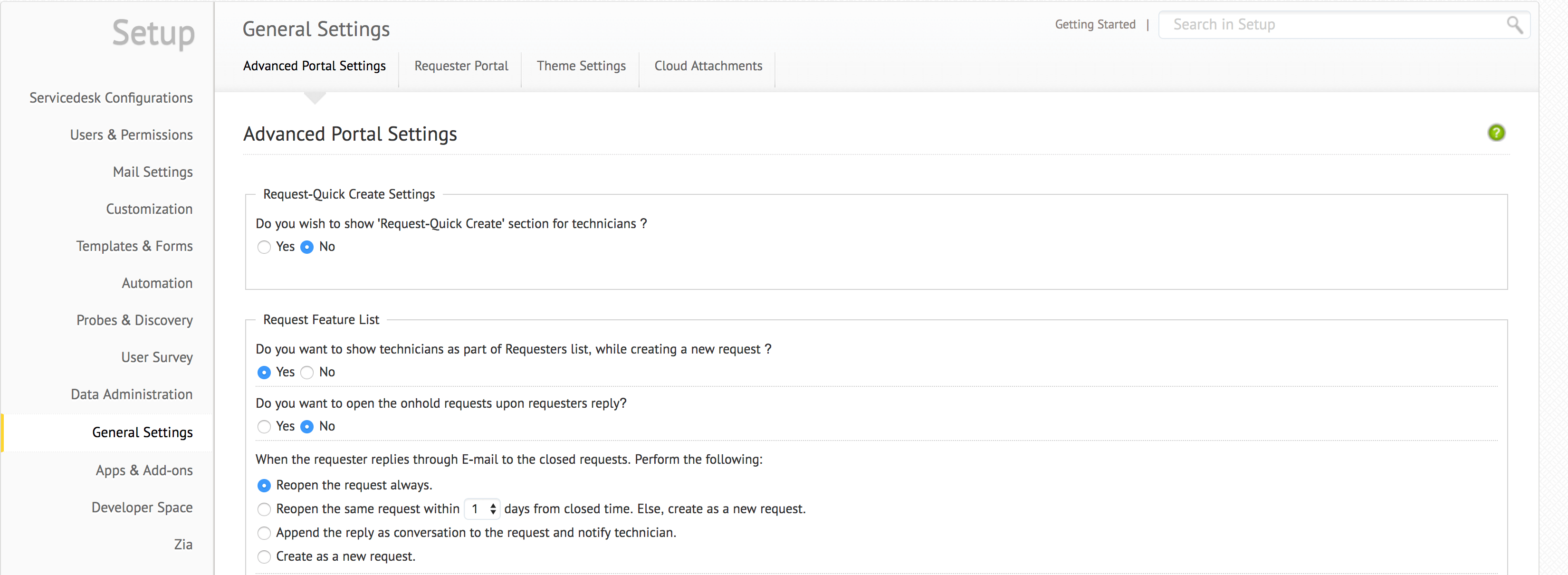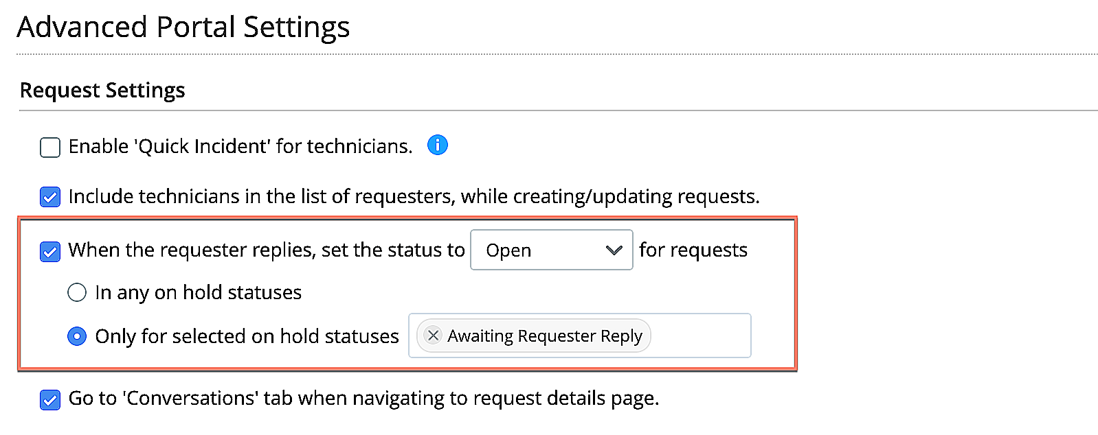 3) Action on email replies from requesters to closed requests in Self Service Portal Settings