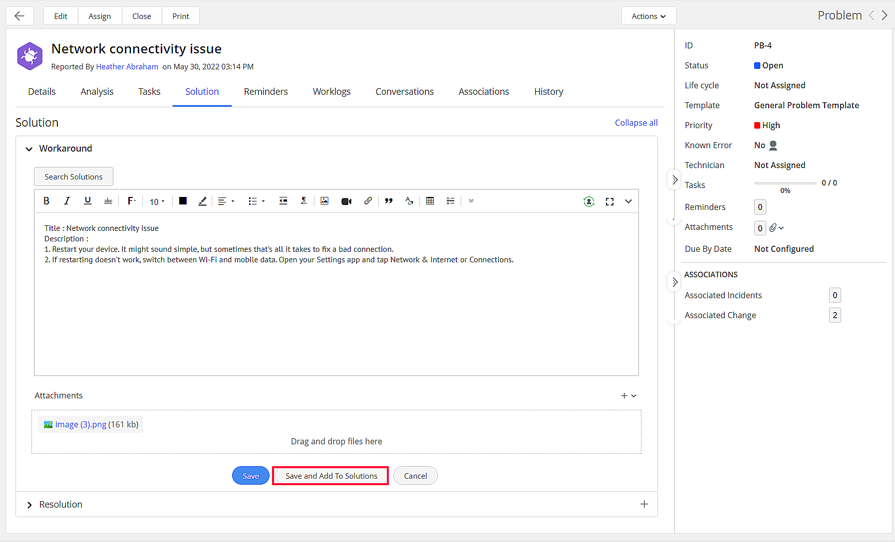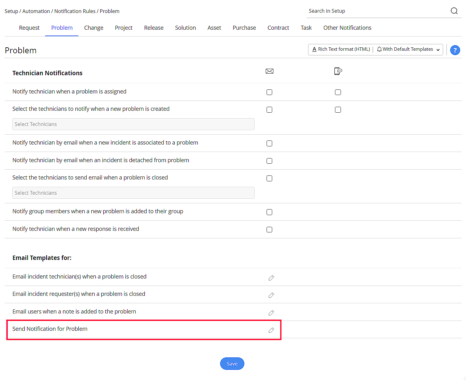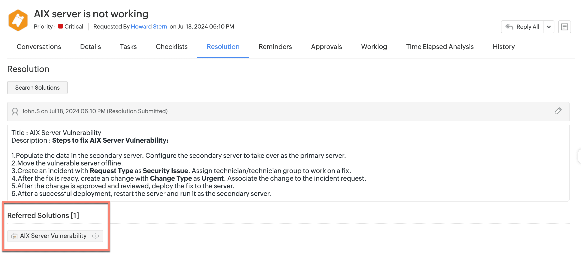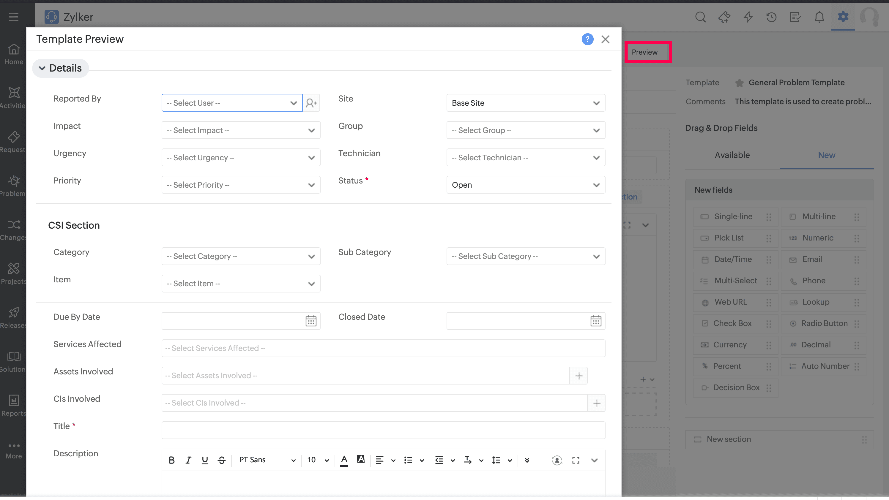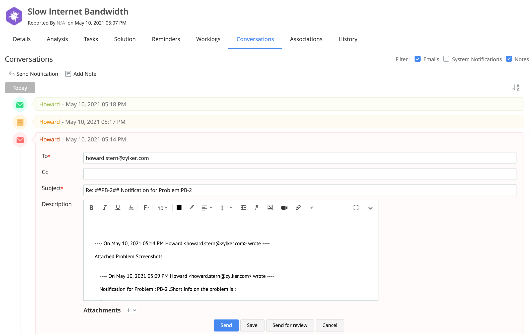 In day-to-day customer support, quite often the technicians will receive requests that involve the same or similar solution. In such cases, instead of typing the solution repeatedly, 'Resolution Templates' could be created. The template will contain the solution, which can be sent to the customers instantly.