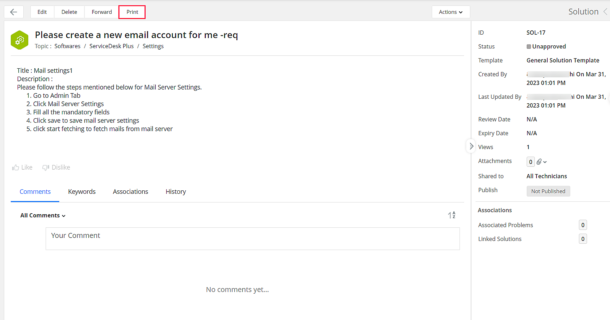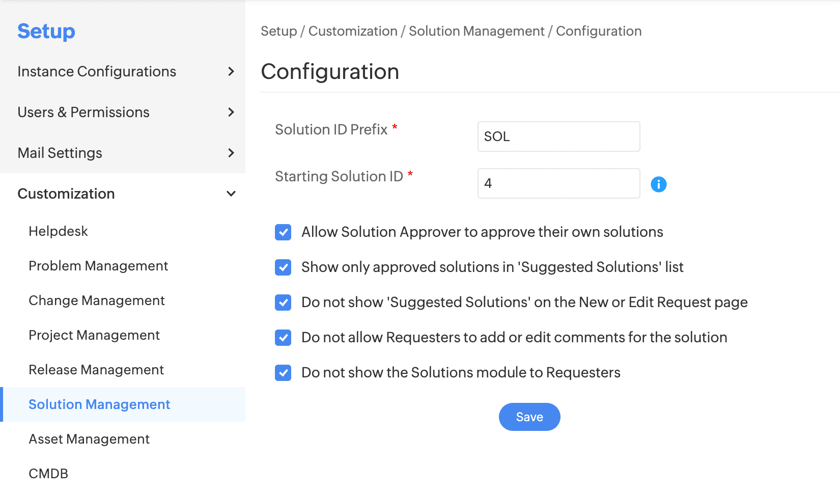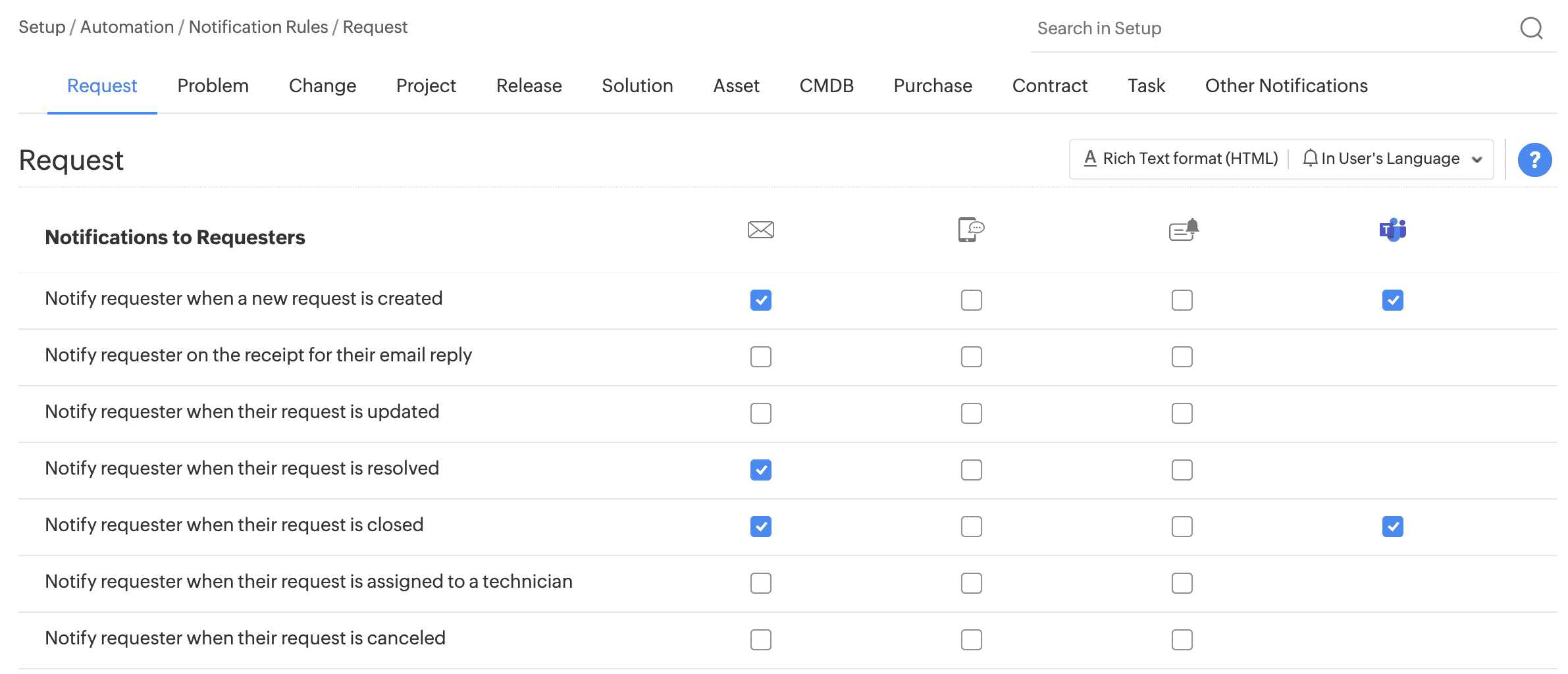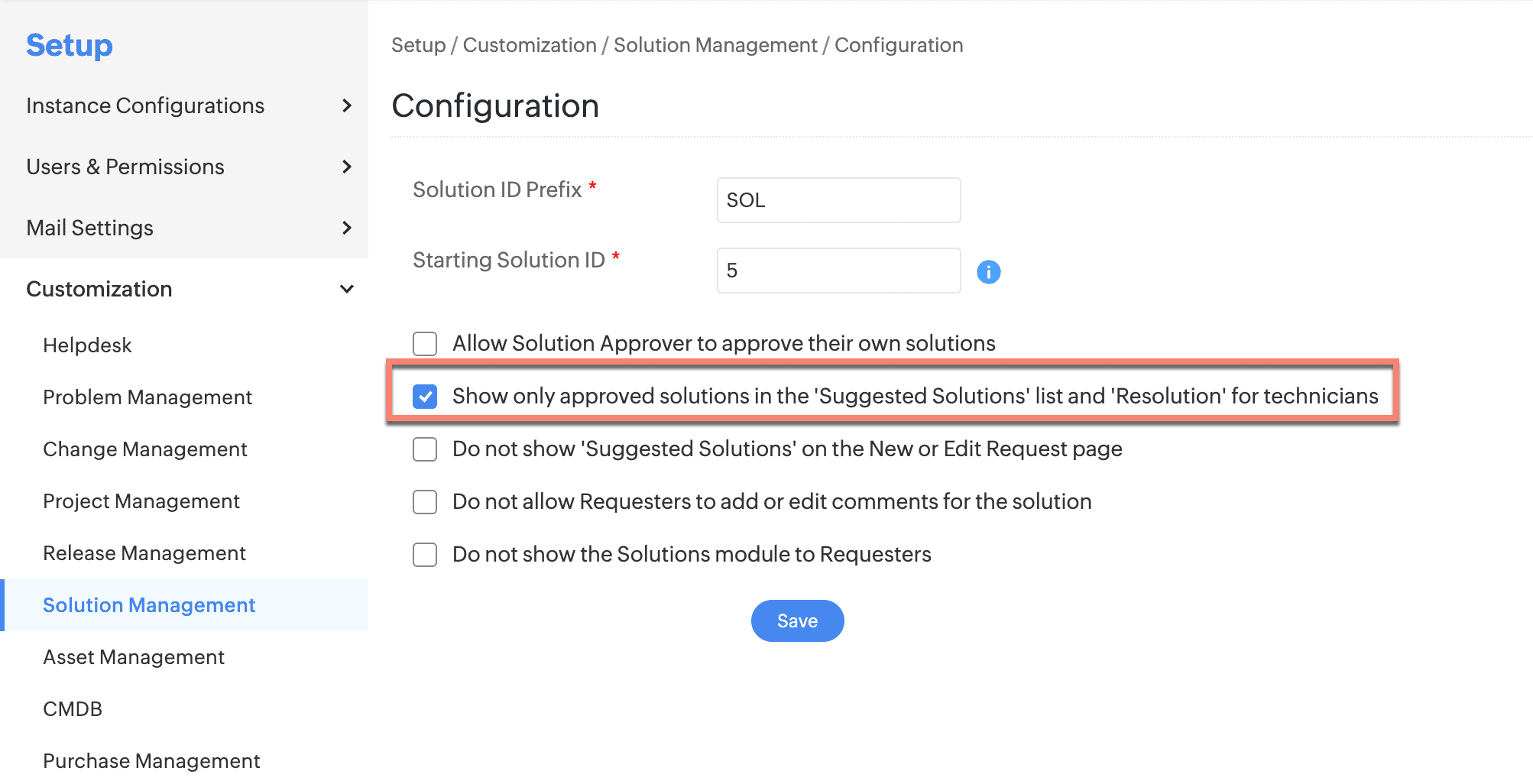 In day-to-day customer support, quite often the technicians will receive requests that involve the same or similar solution. In such cases, instead of typing the solution repeatedly, 'Resolution Templates' could be created. The template will contain the solution, which can be sent to the customers instantly.