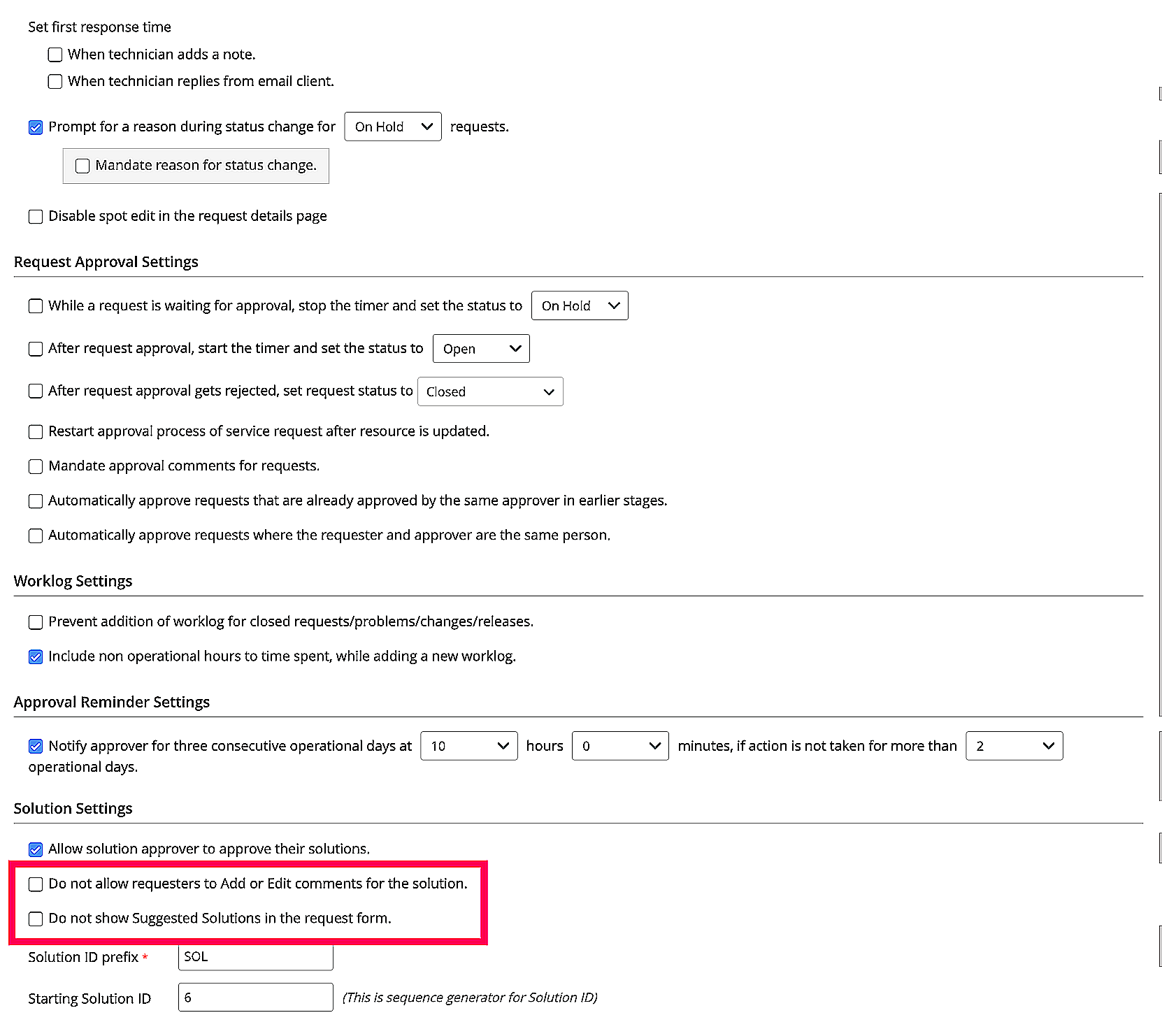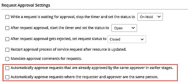 5) Stopping the timer for requests awaiting approval in Self Service Portal Settings