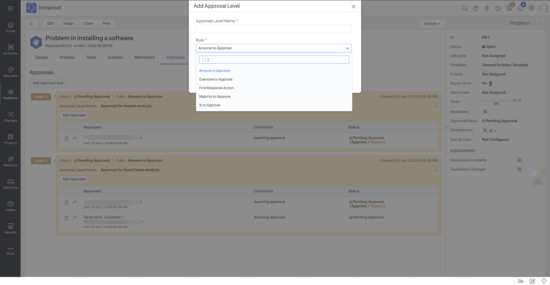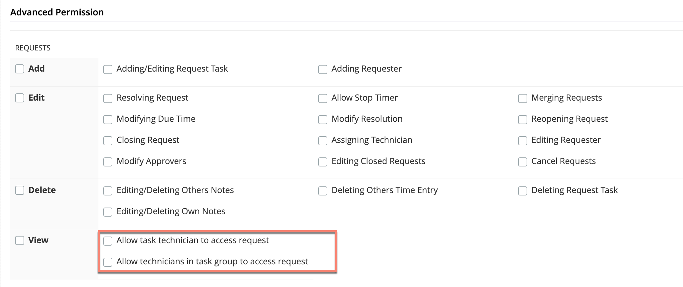 Note: Advanced permissions for Problems are now grouped into Edit permission.