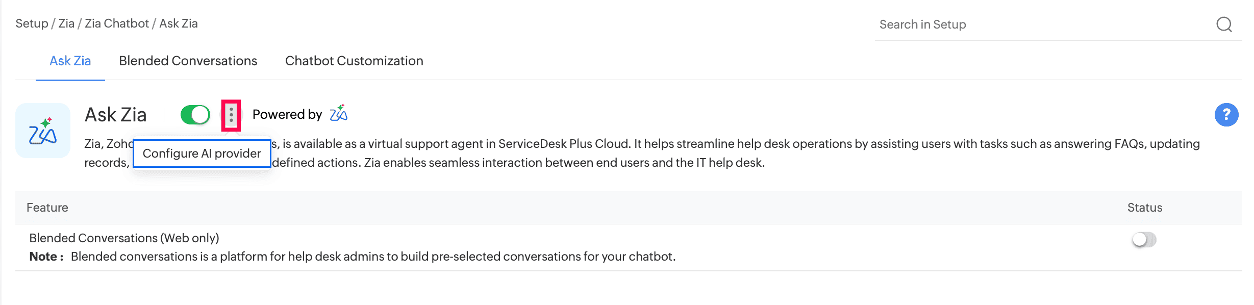 Administrators can enable the feature under Setup > Zia > Artificial Intelligence > GenAI Features.