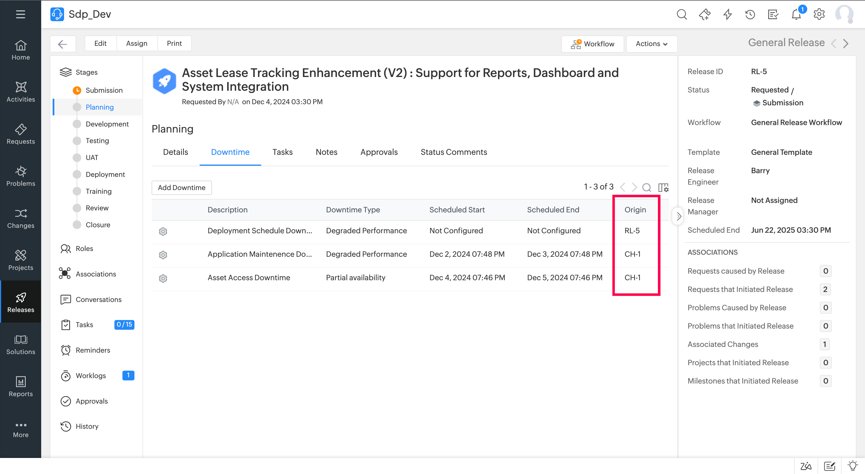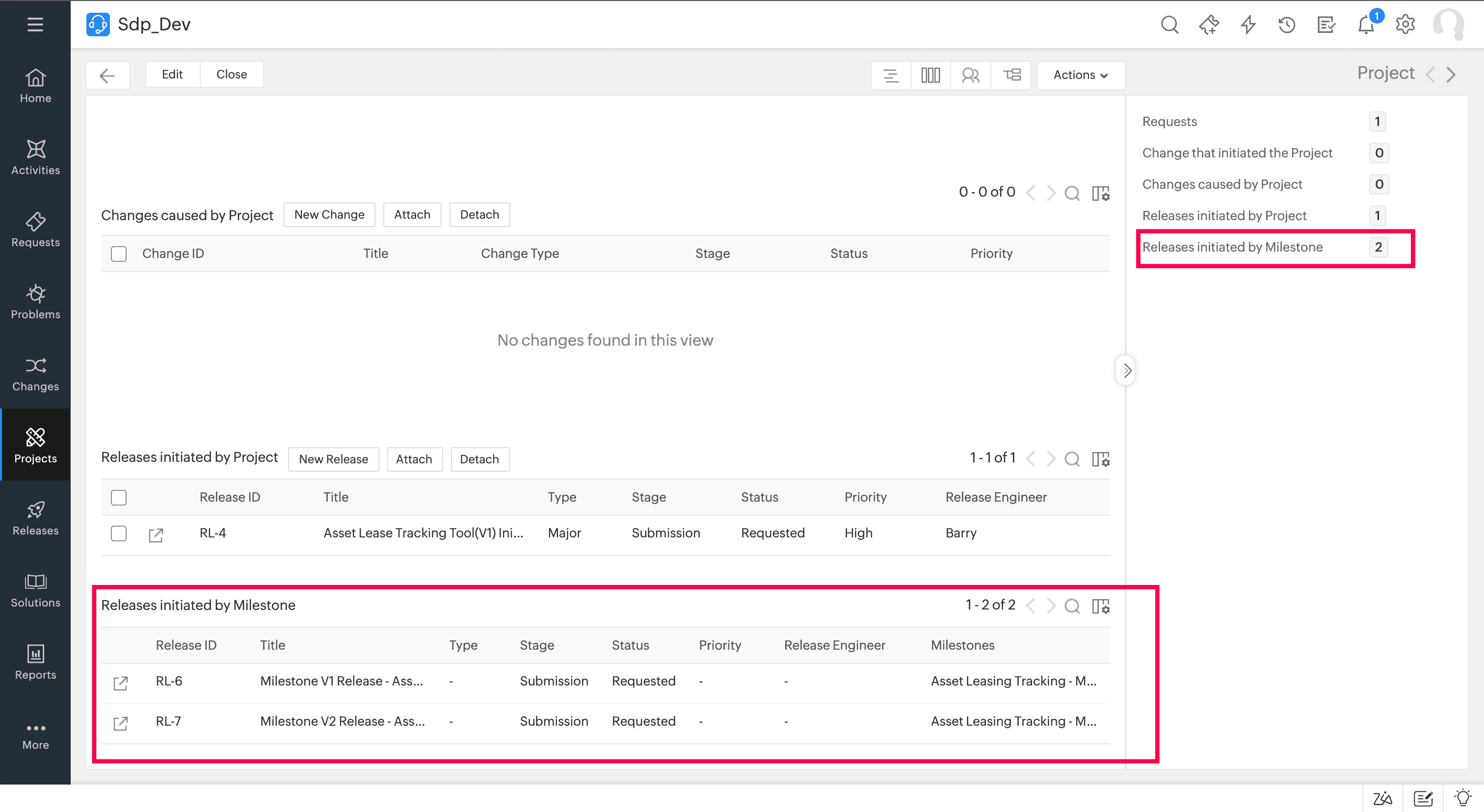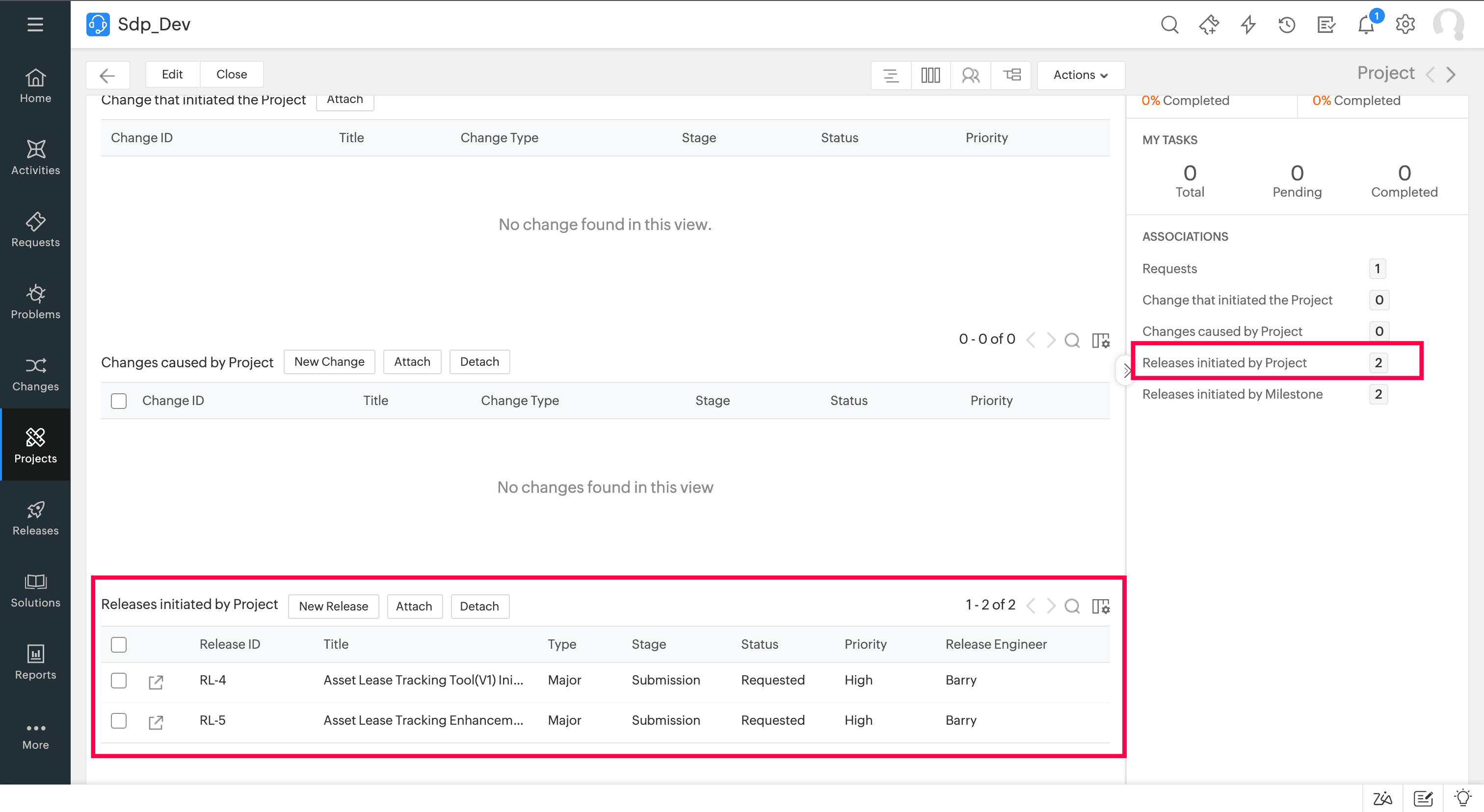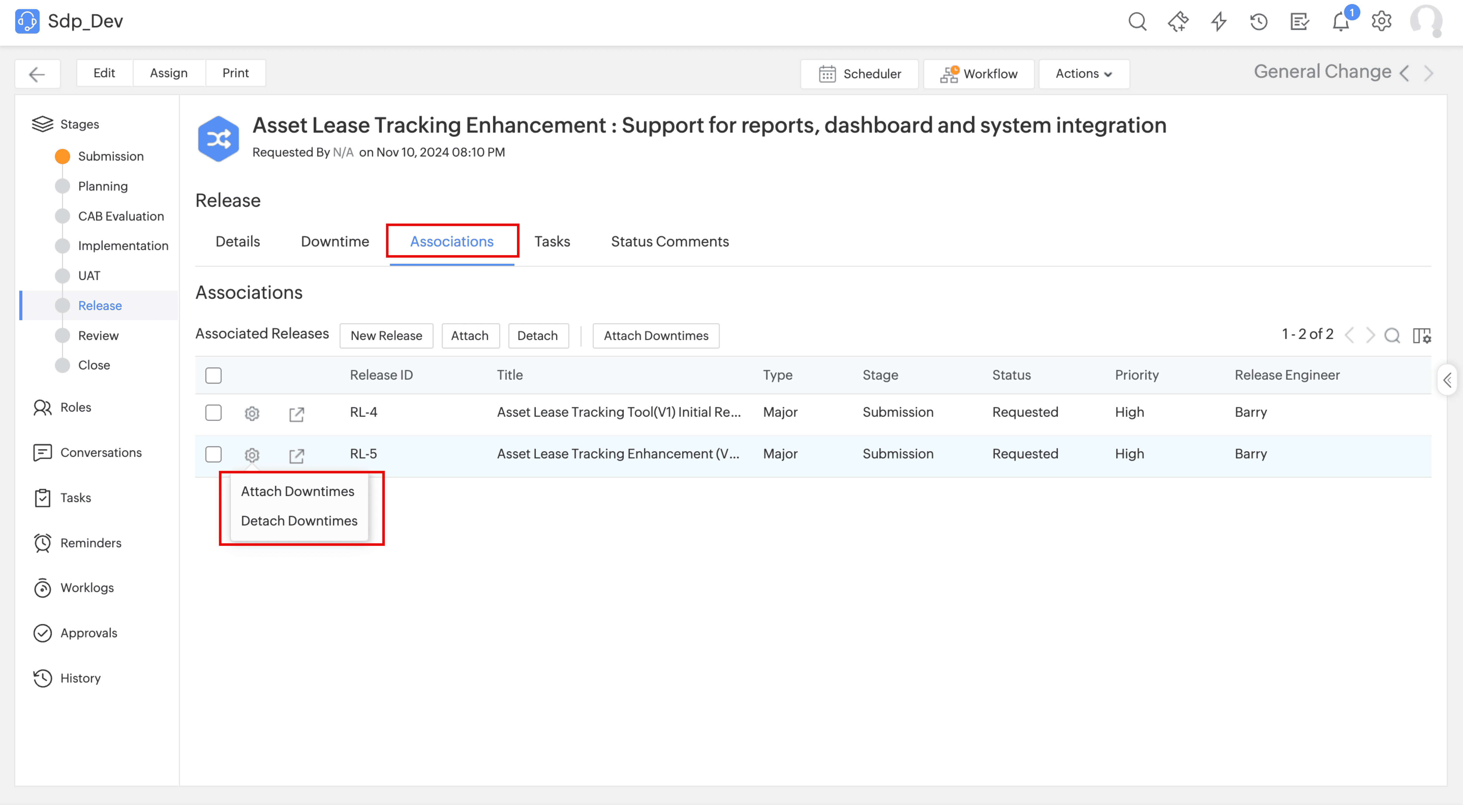 Parent release & Sub-release Association: Break a large release initiative into manageable, sequential releases using the Parent - Sub release associations. To do that, in the parent release, go to the Associations tab and add related sub-releases.
