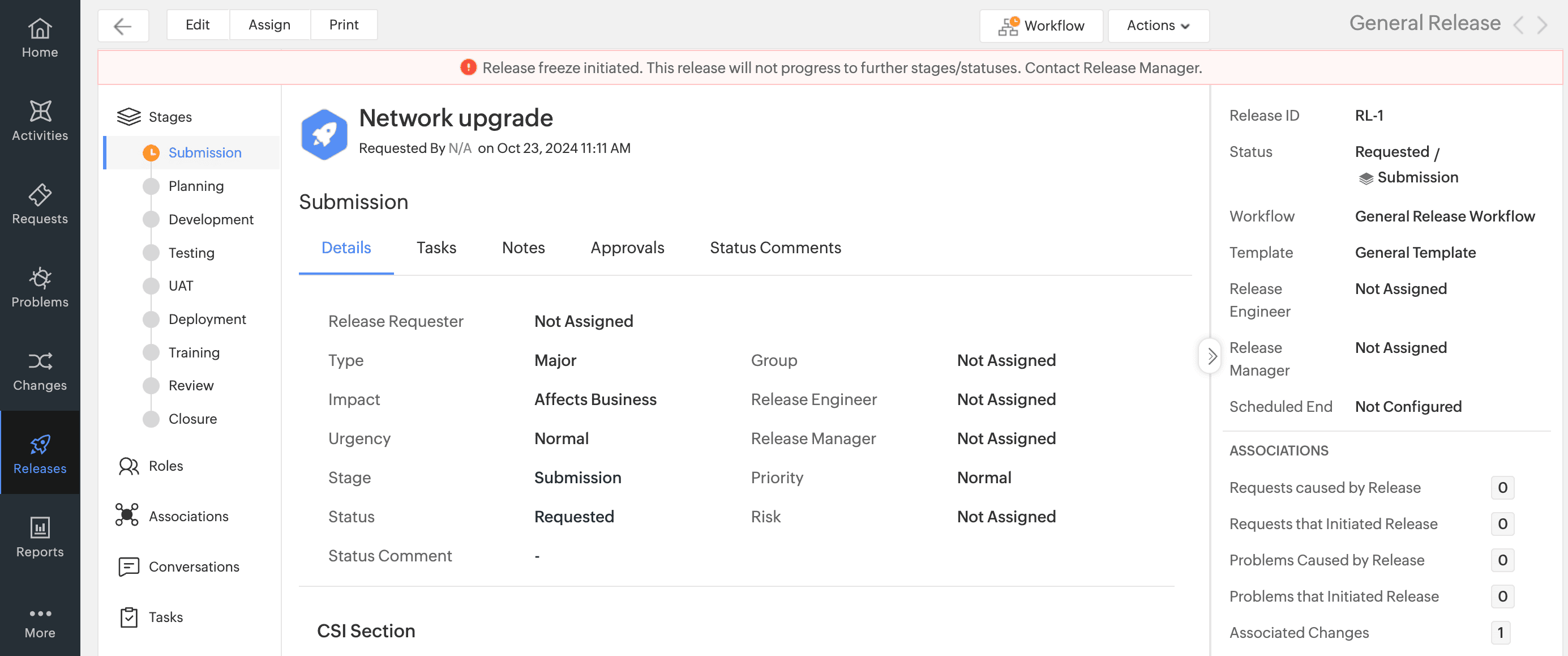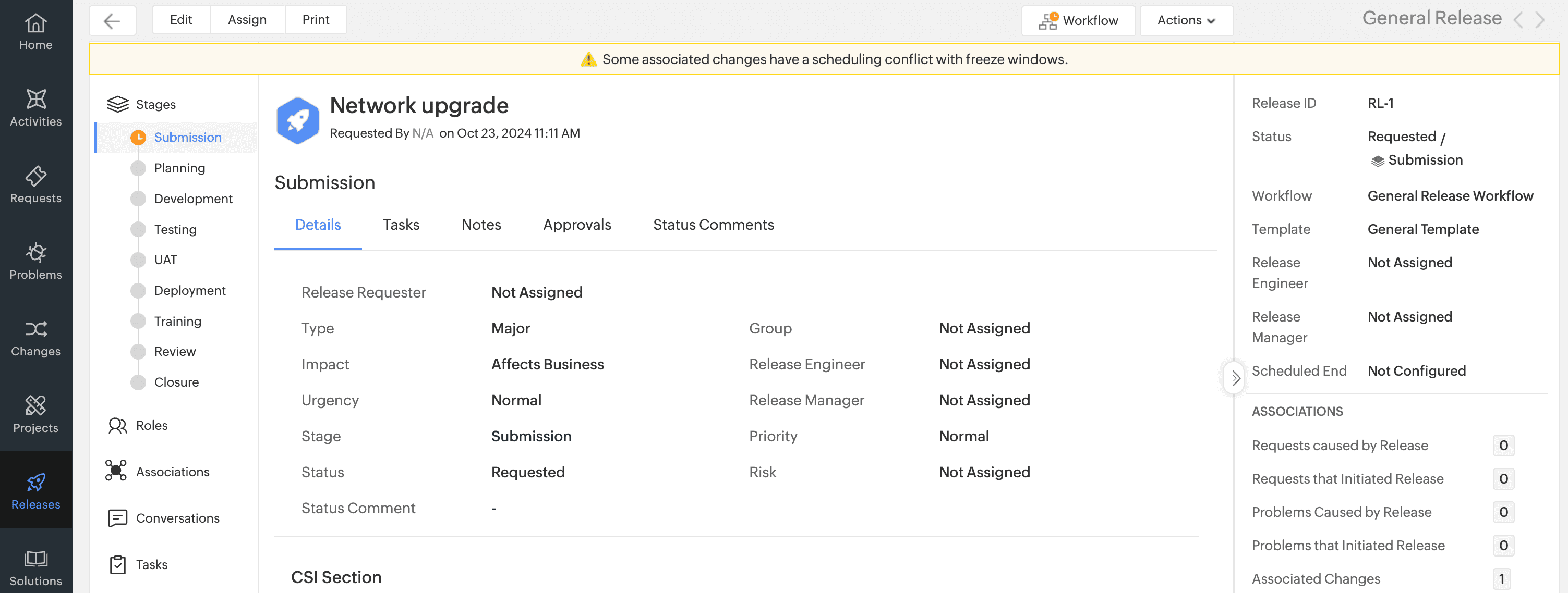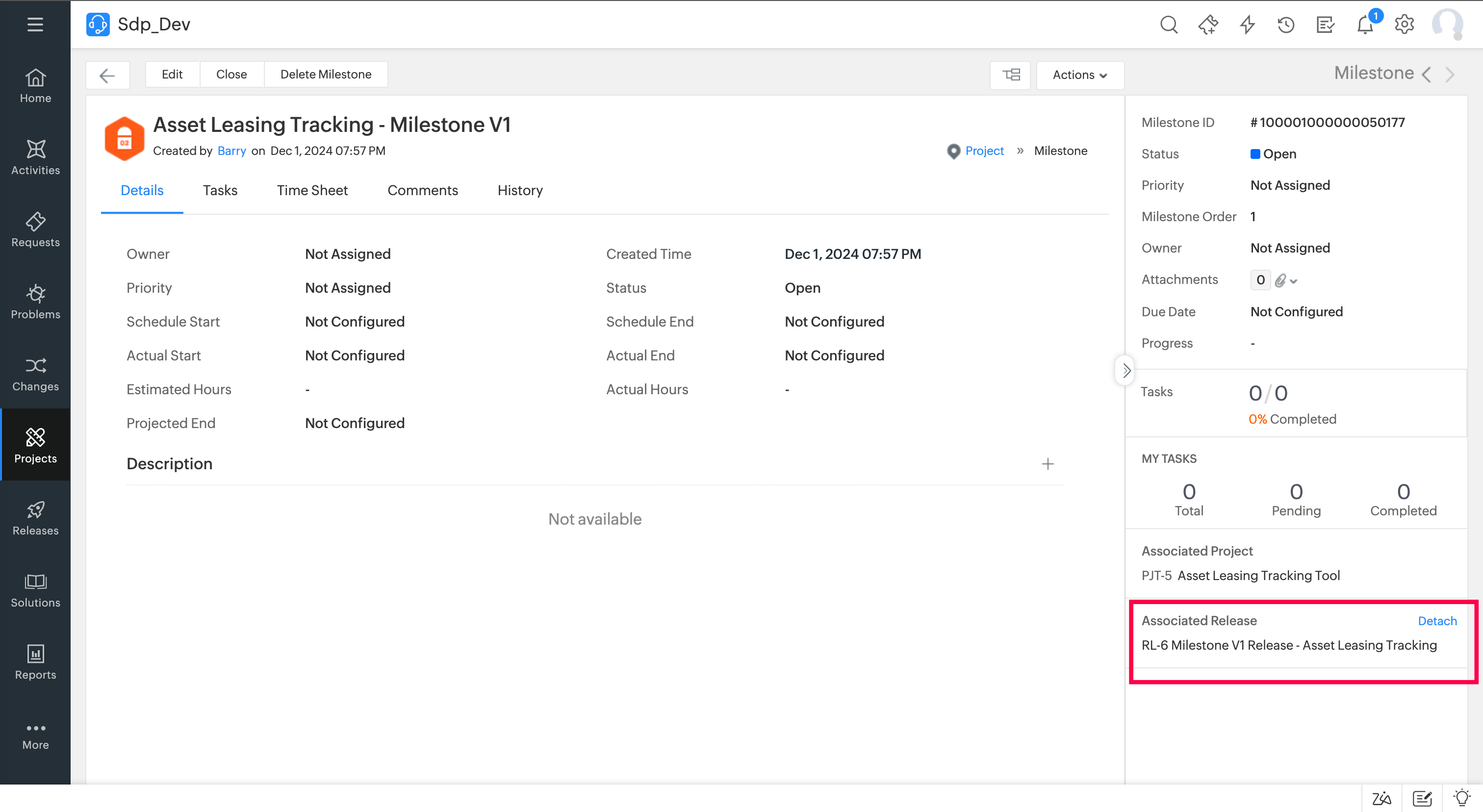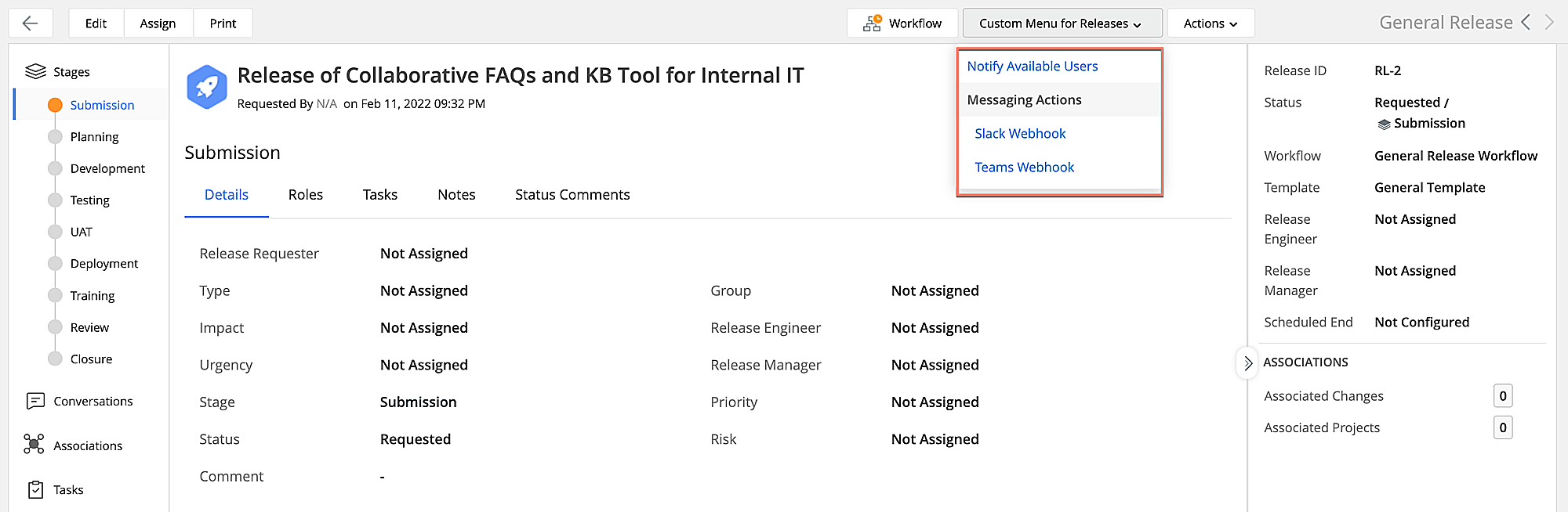 Parent release & Sub-release Association: Break a large release initiative into manageable, sequential releases using the Parent - Sub release associations. To do that, in the parent release, go to the Associations tab and add related sub-releases.