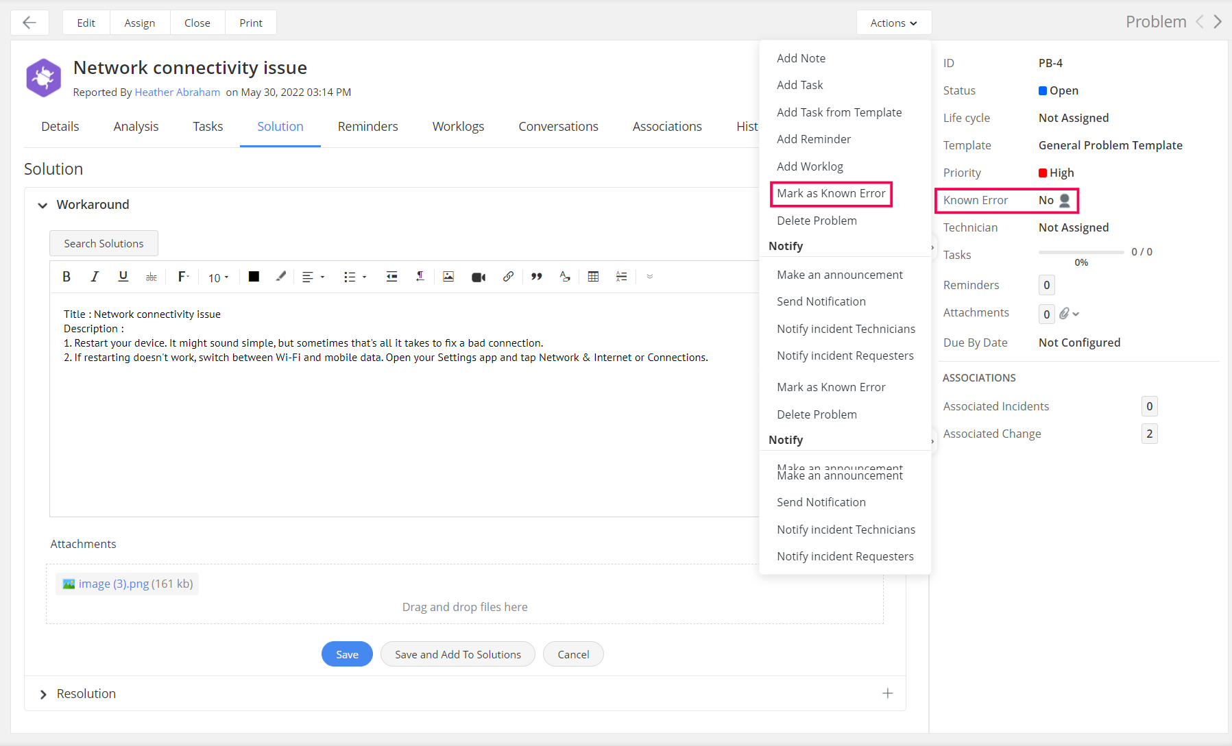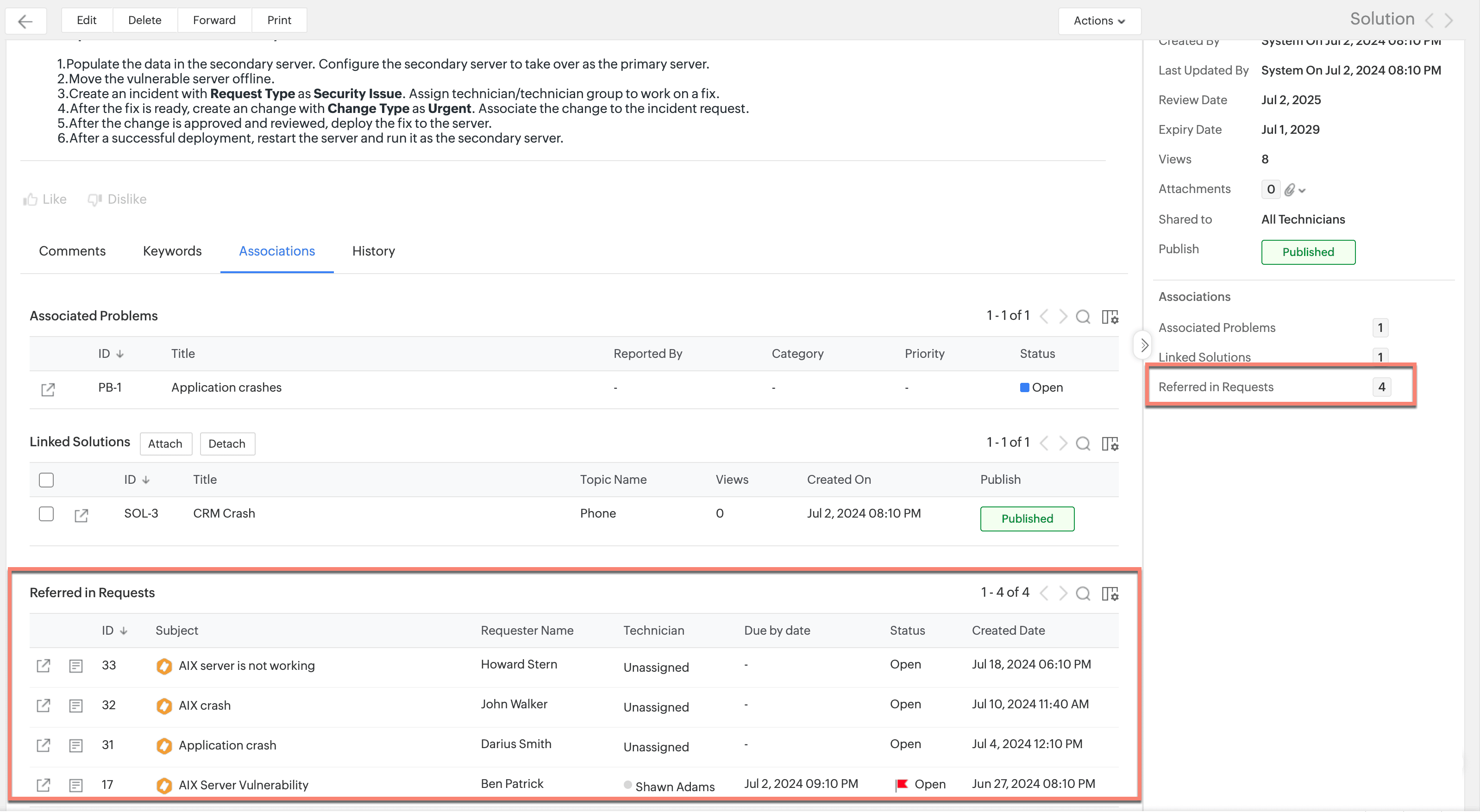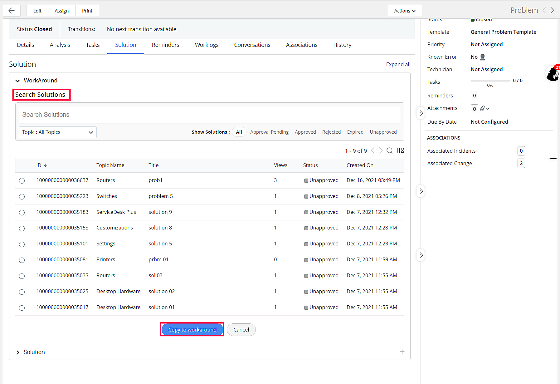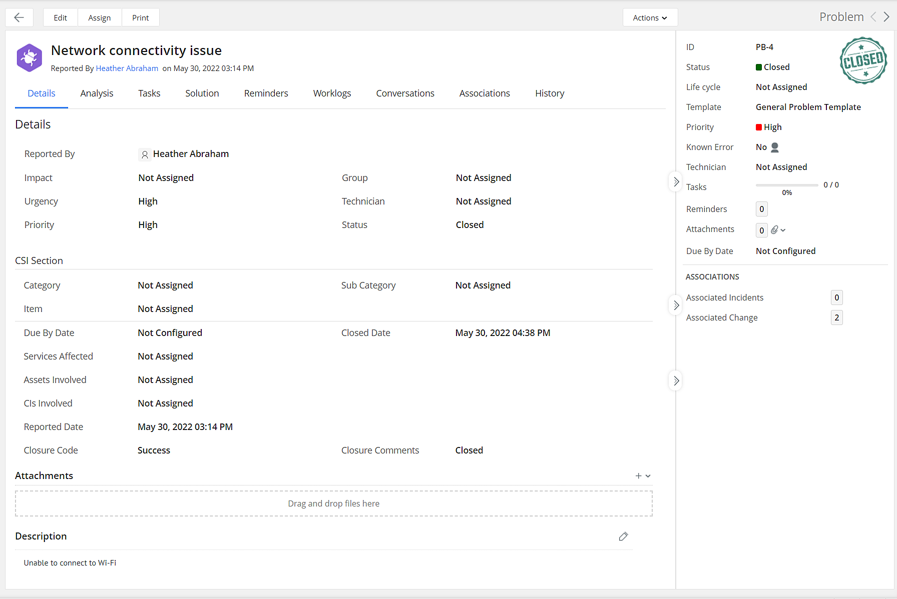 You can now open actual Incident details from associated Incidents section in Change and Problem details. Earlier the Incident details were loaded