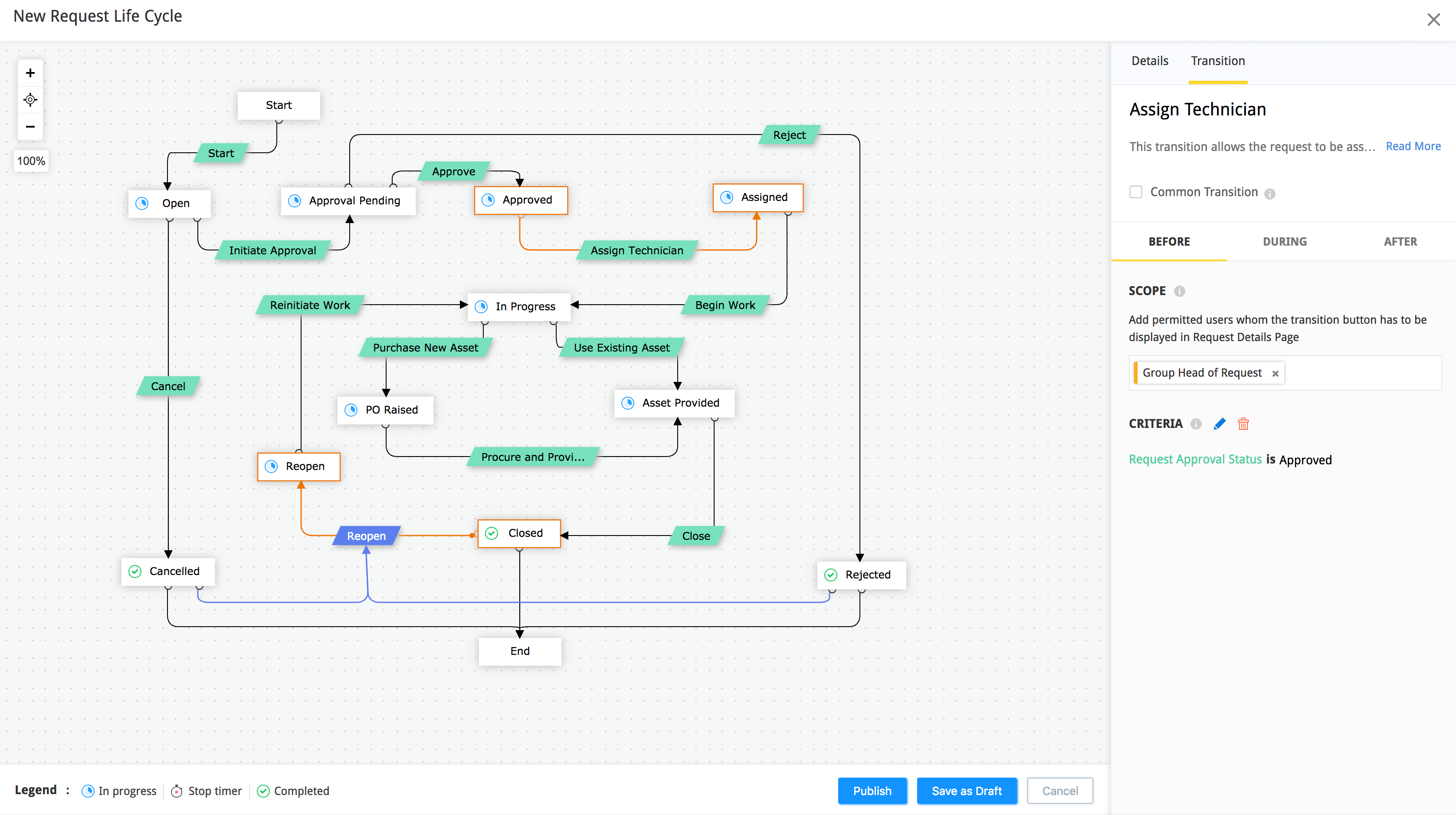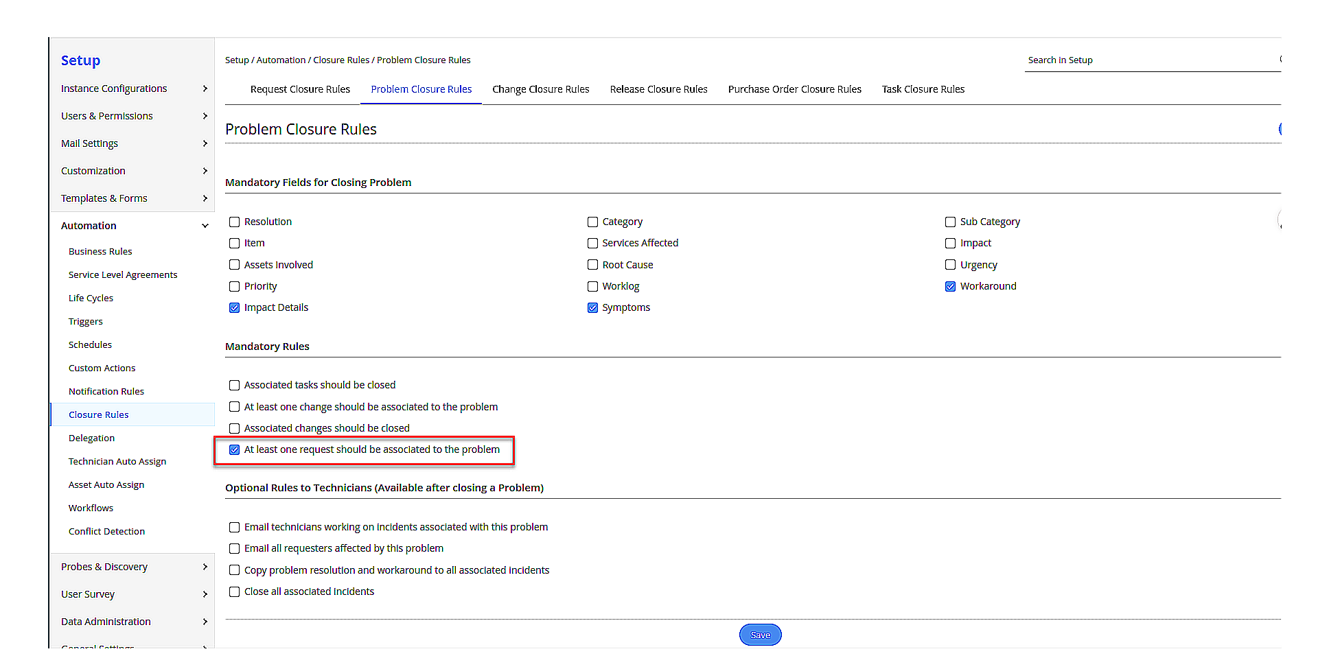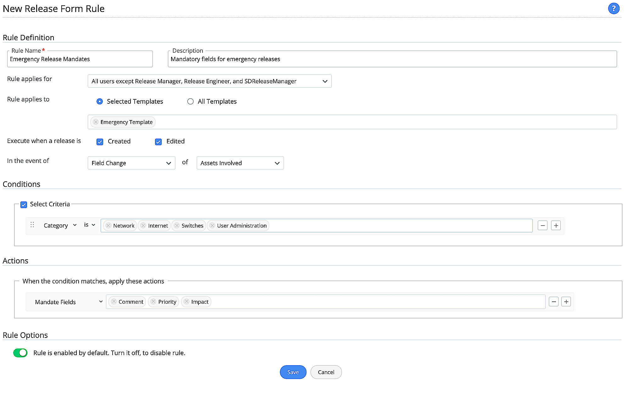 You can now add and execute Business Rules and Service Level Agreements without selecting the criteria. These Business Rules and Service Level Agreement are executed when none of the request values satisfy any parameter criteria mentioned in other Business Rules and Service Level Agreement.