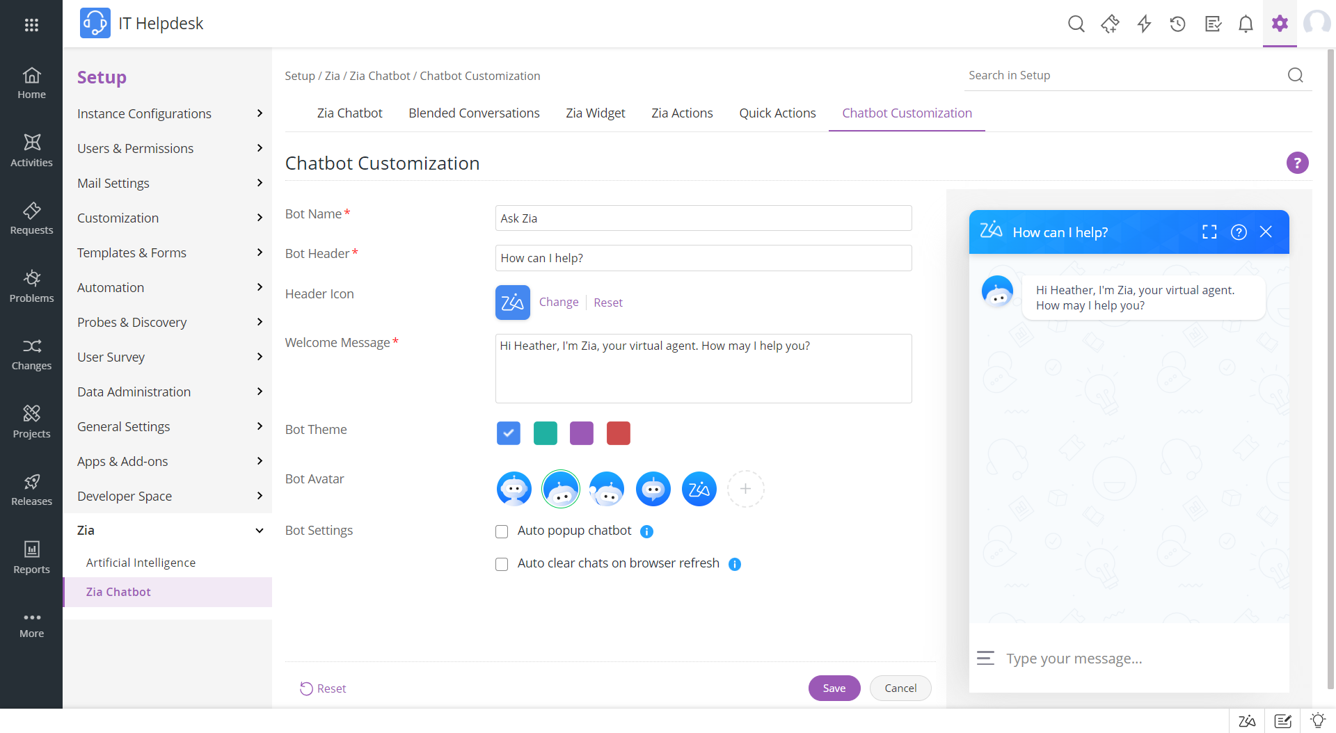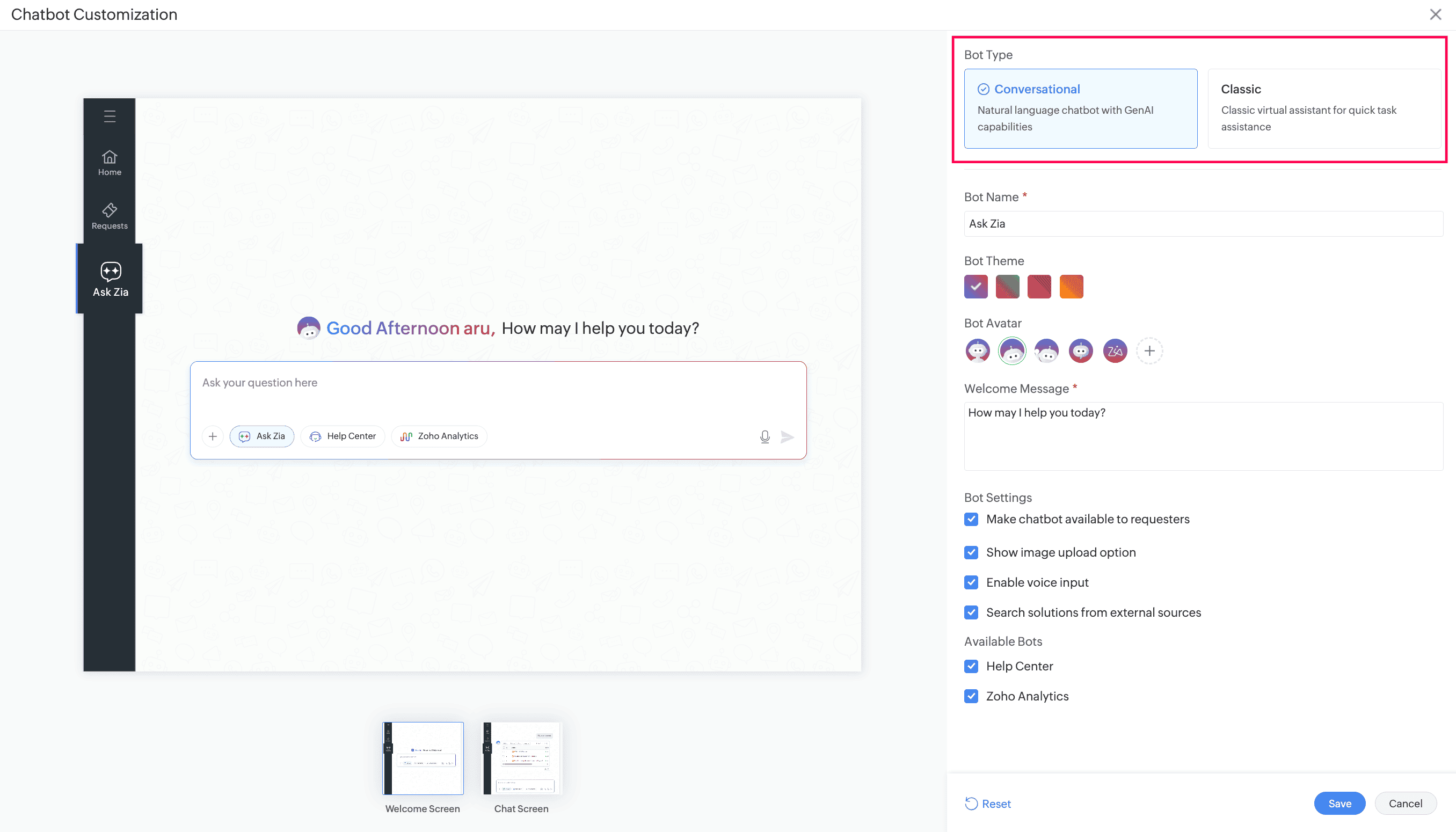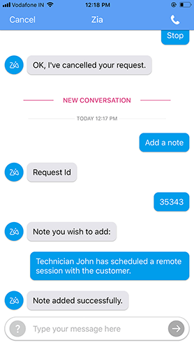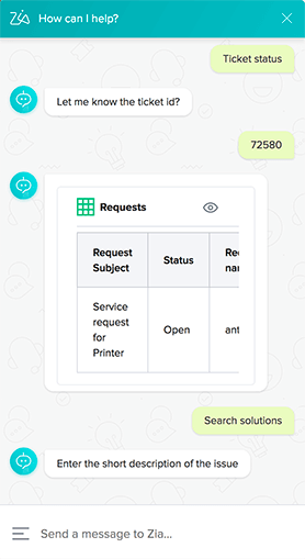 Ask Zia, powered by LLM, is now available as a conversational bot, delivering a smarter and interactive experience for users. It supports text, voice, and image inputs, offering a flexible way to interact with the Zia.