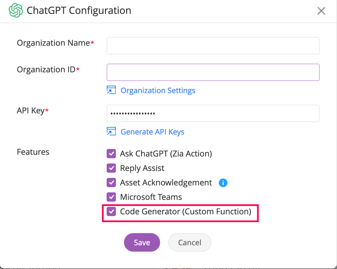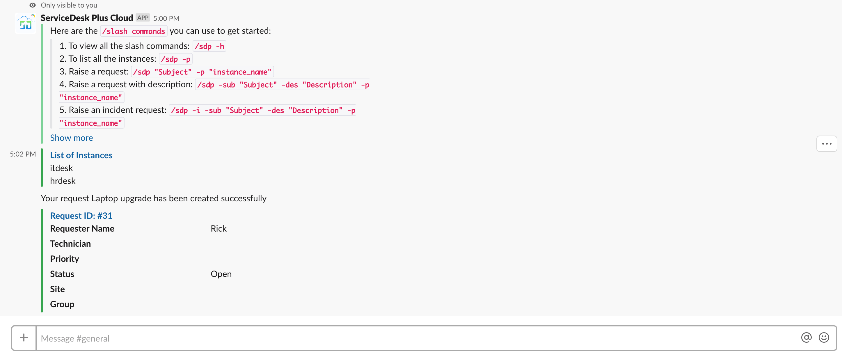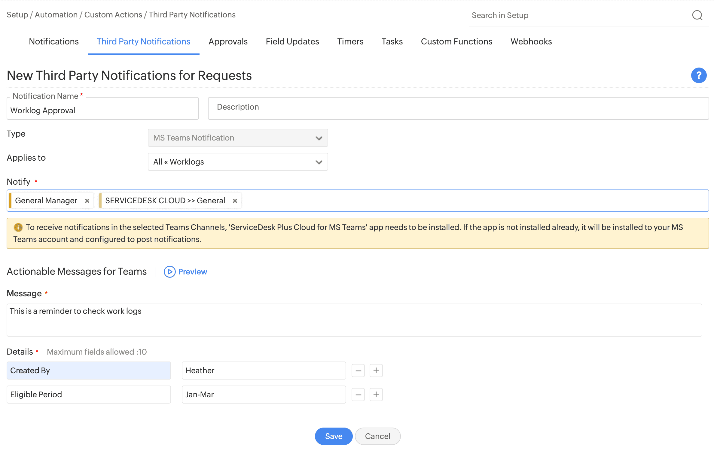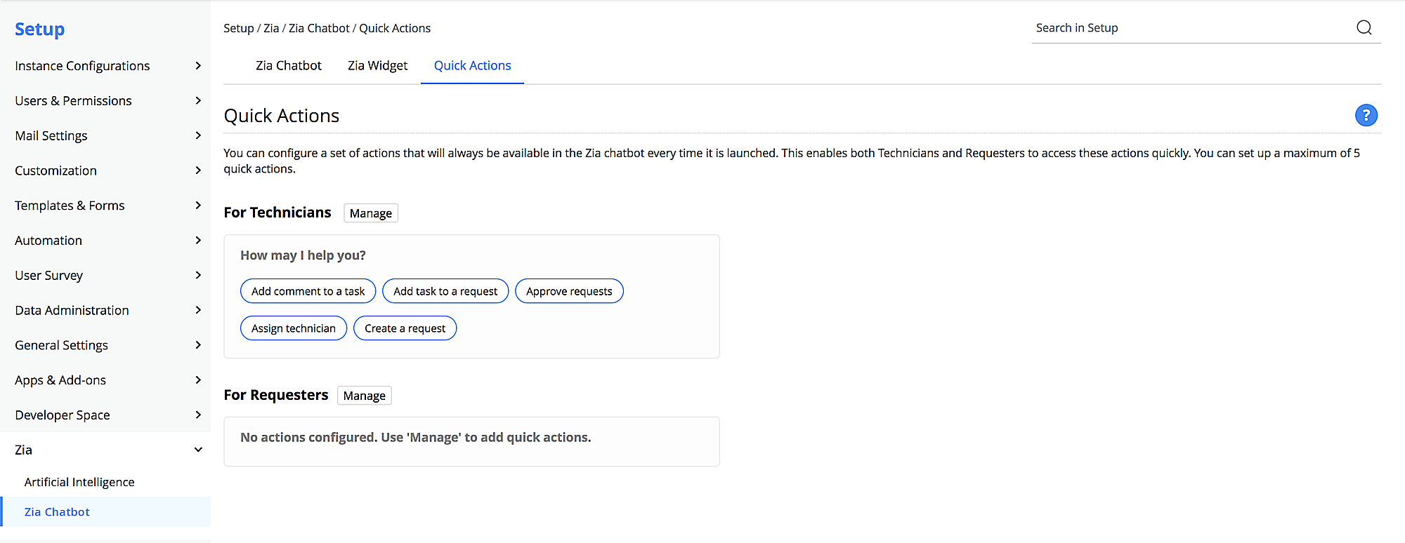 You can now execute Zia action commands directly from the ServiceDesk Plus Cloud bot in Microsoft Teams by enabling the Microsoft Teams card in the Integrations page in ServiceDesk Plus Cloud.