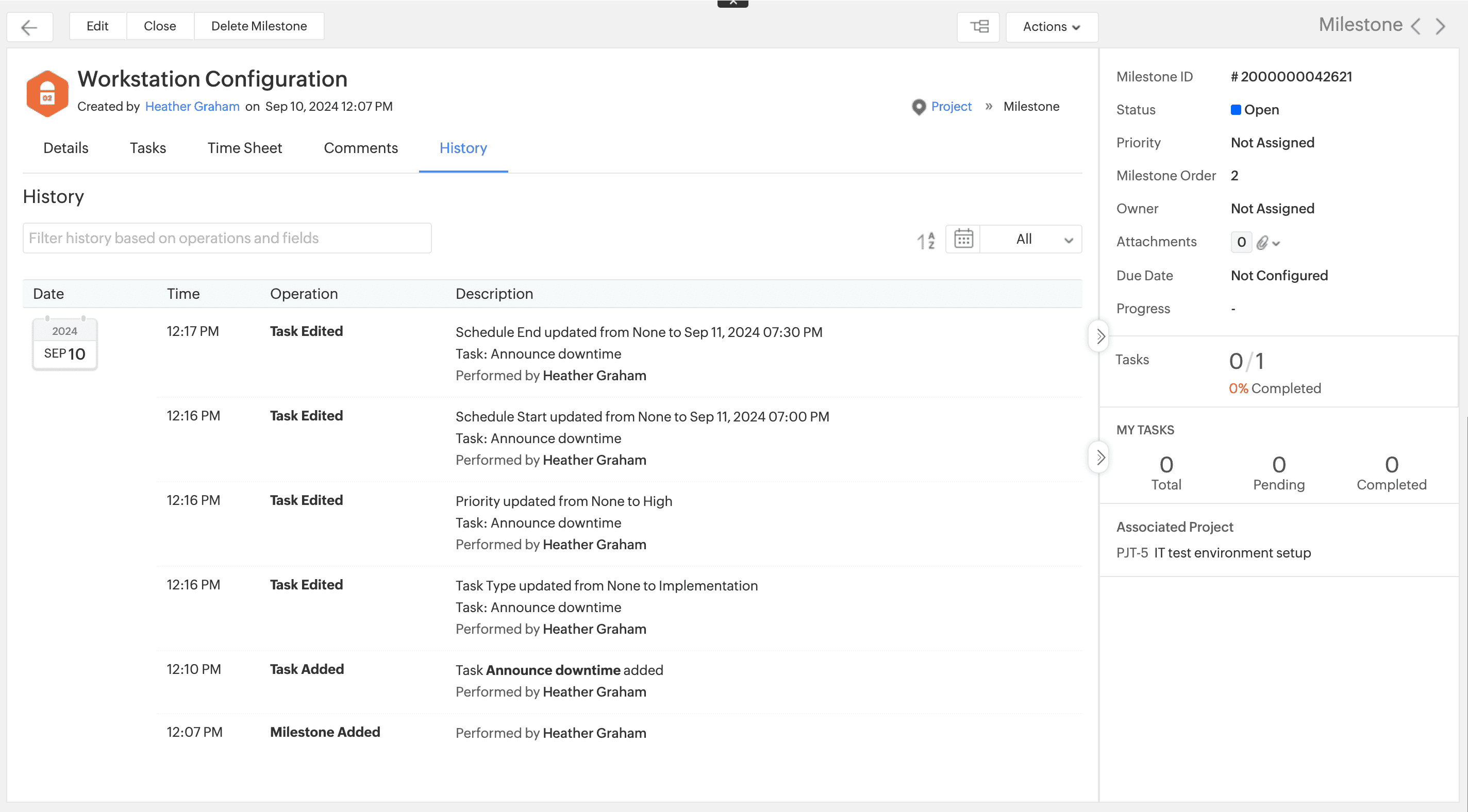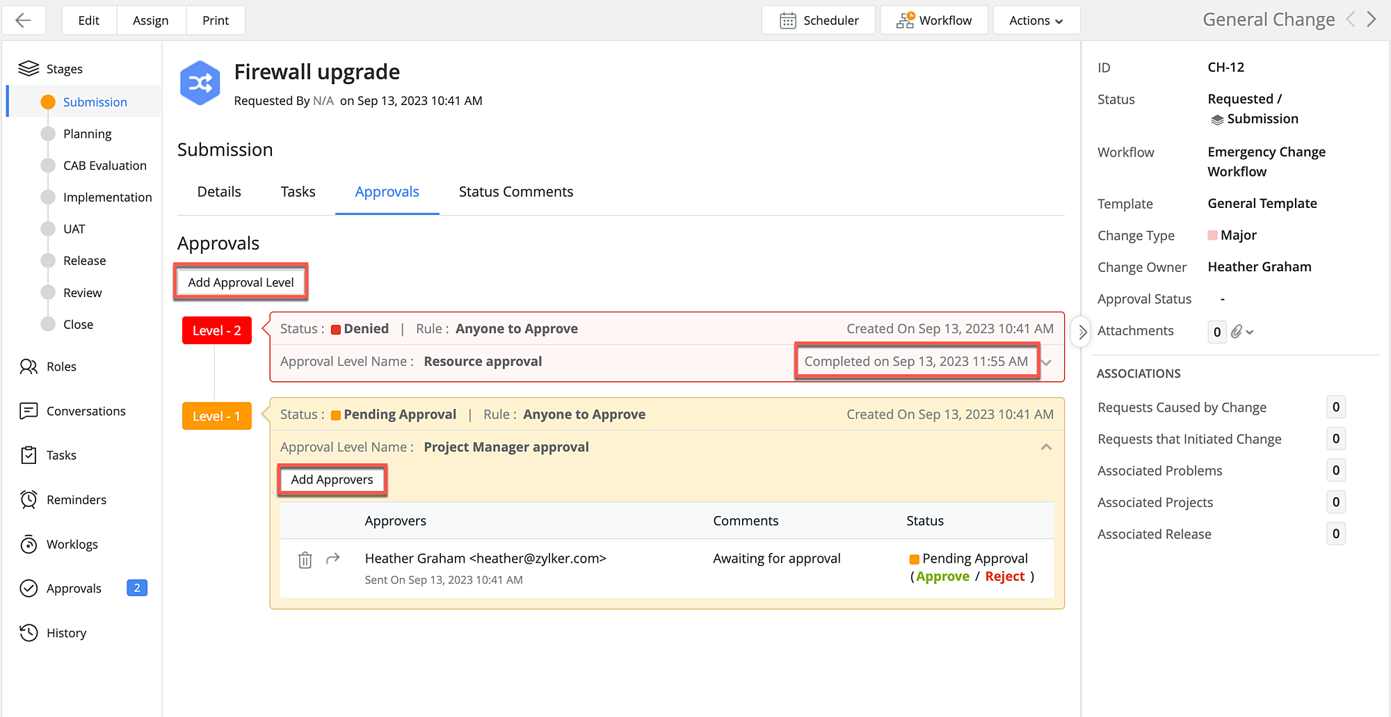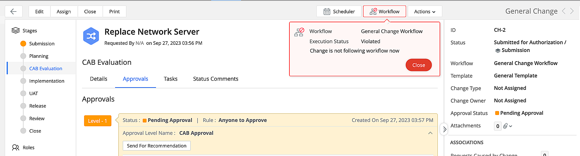 View critical details of a record, such as workflow, task and checklist progress, approval status, associated requests and changes, and more. |