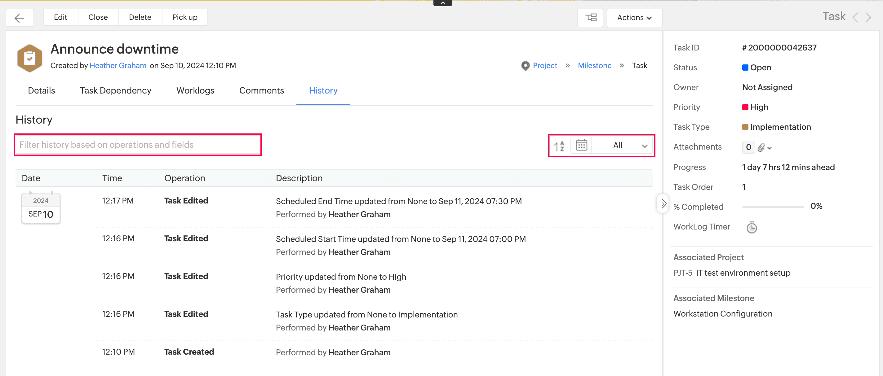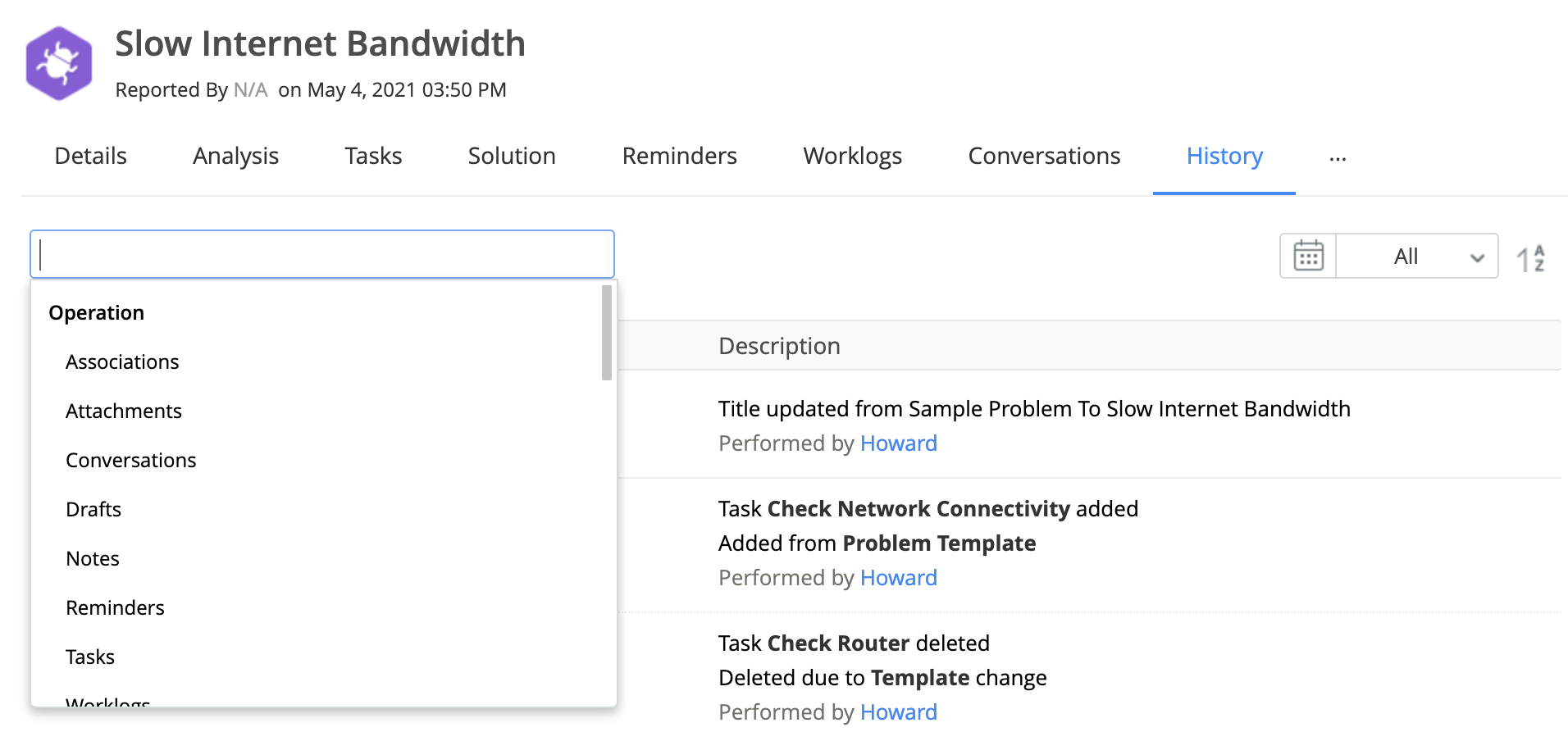 3) Earlier, the 'Work Log' in 'Problem' and 'Change' displayed only the recent 10 records. This has now been changed to include all the available records.
